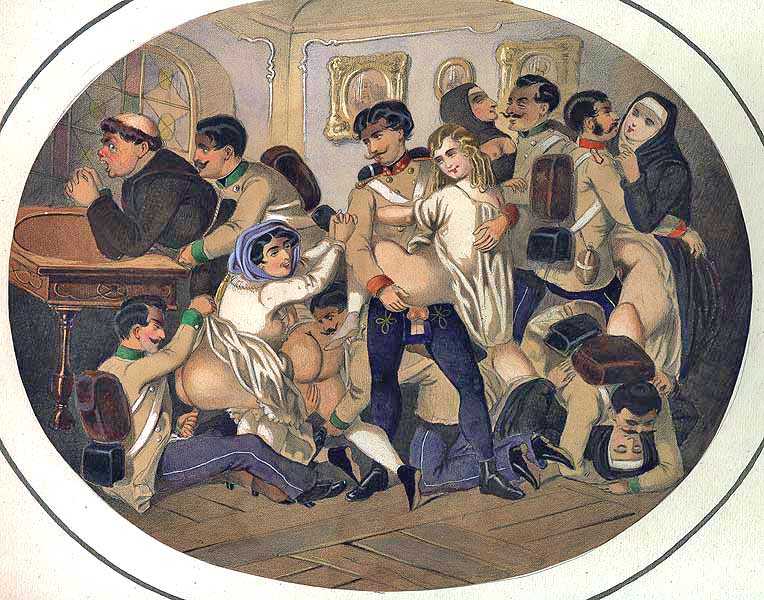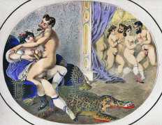 In the true spirit of mid-nineteenth century debauchery, the German artist Herr Anon produced this colourful portfolio of fifteen lithographs entitled Nuditäten (Nudities), exploring the limits of erotic imagination.