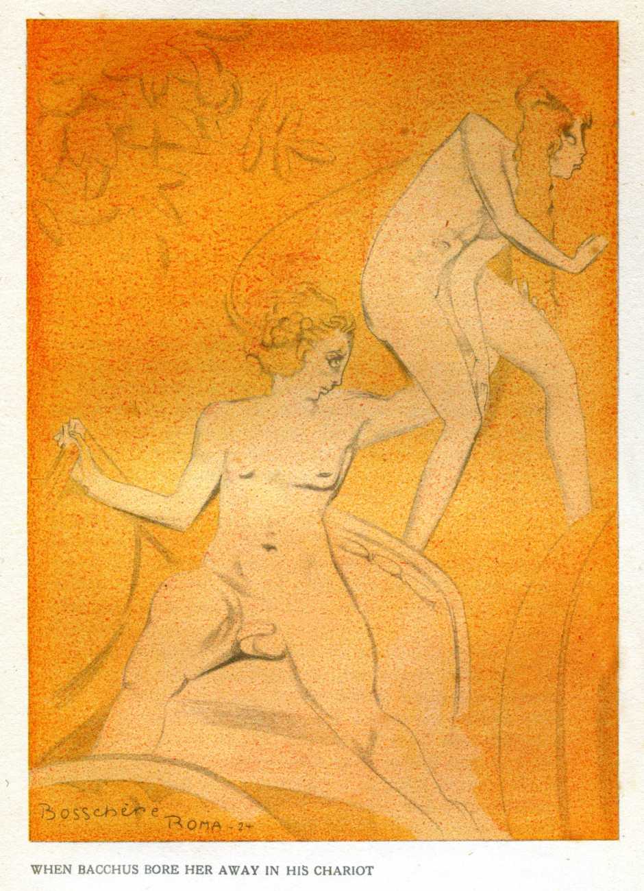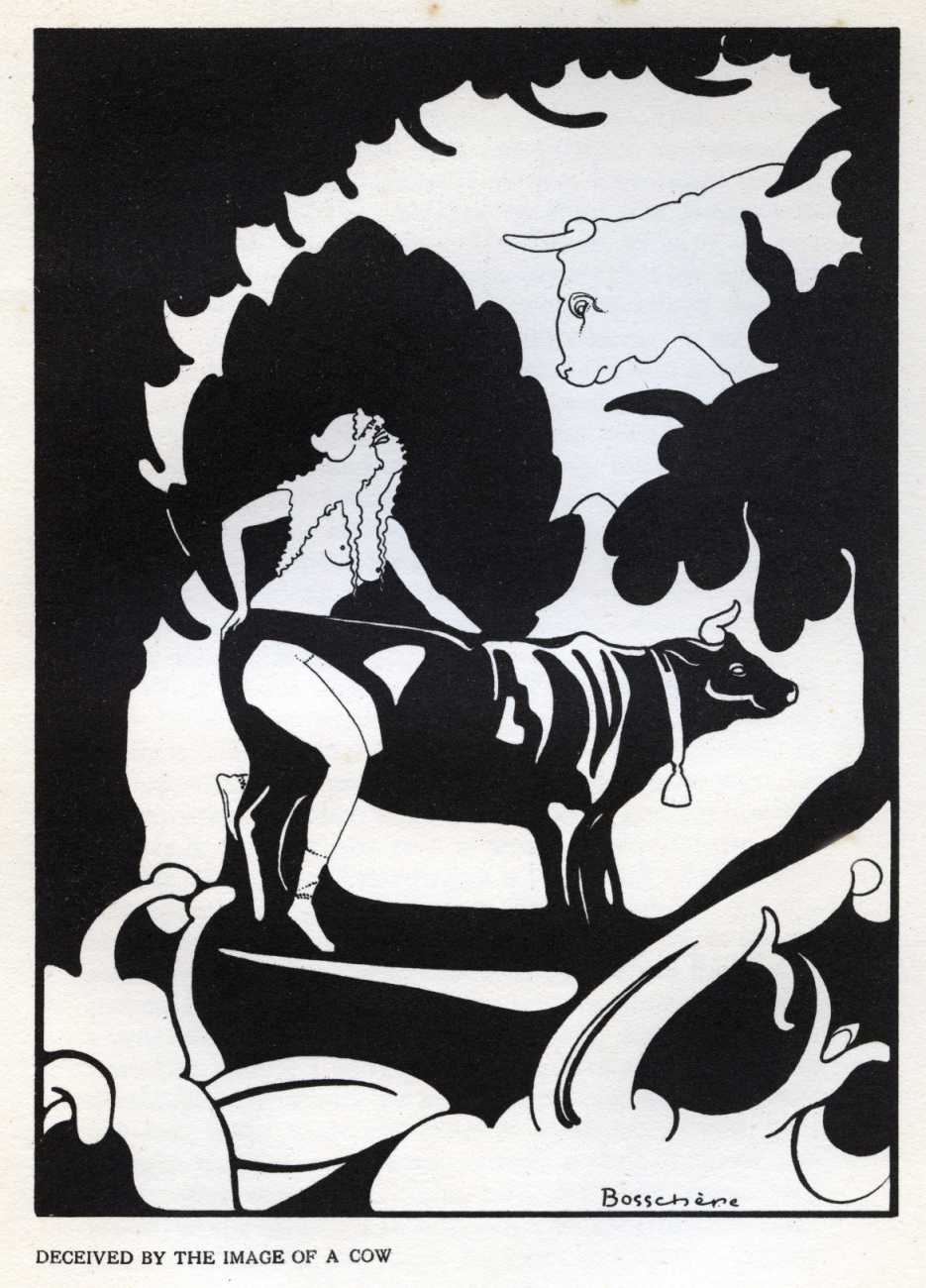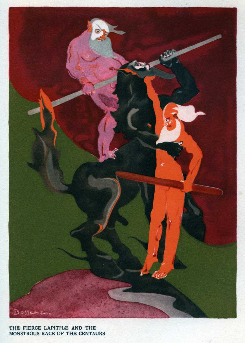 Ovid’s varied subjects gave Bosschère plenty of material to illustrate. Of the twenty-four illustrations, eight are in black and white, eight in colour, and eight in an interesting ochre pallette unique to this volume.