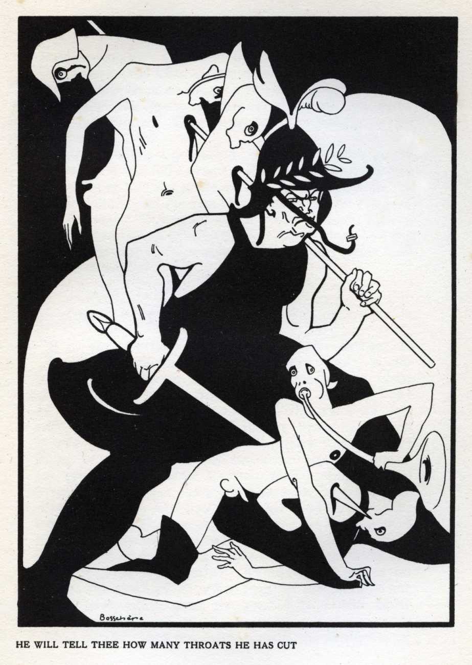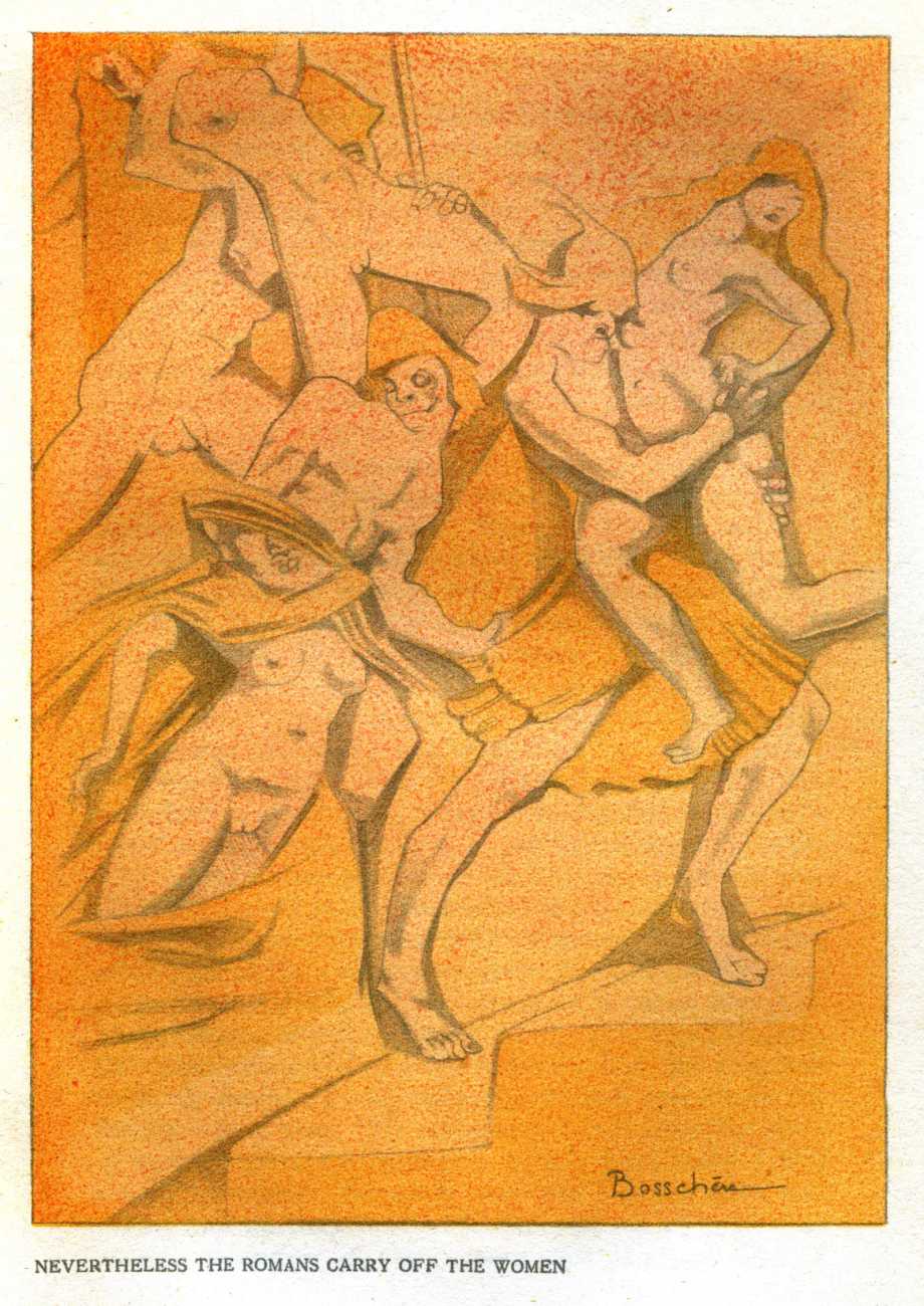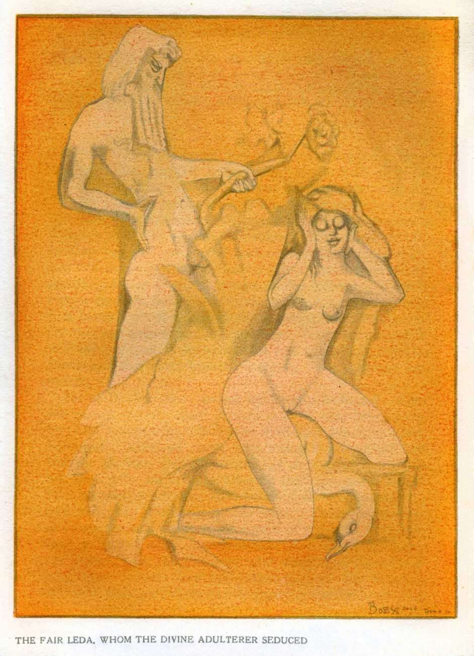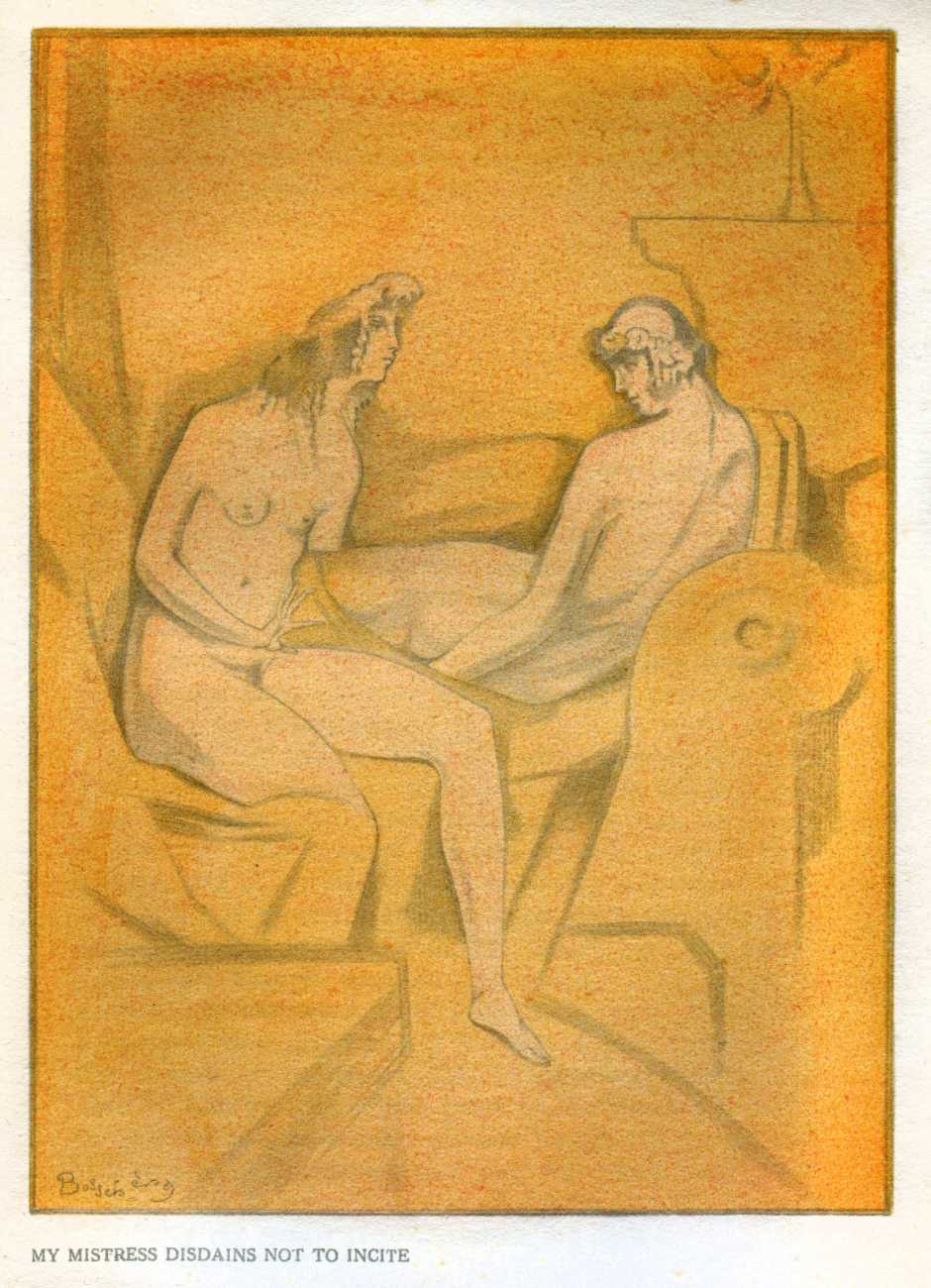 Ovid’s varied subjects gave Bosschère plenty of material to illustrate. Of the twenty-four illustrations, eight are in black and white, eight in colour, and eight in an interesting ochre pallette unique to this volume.
