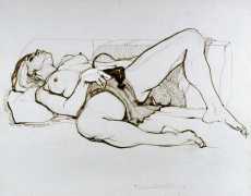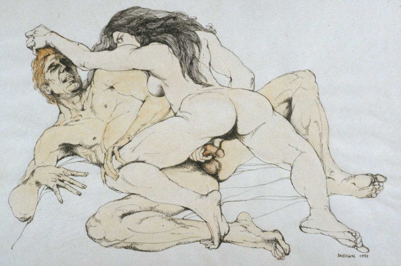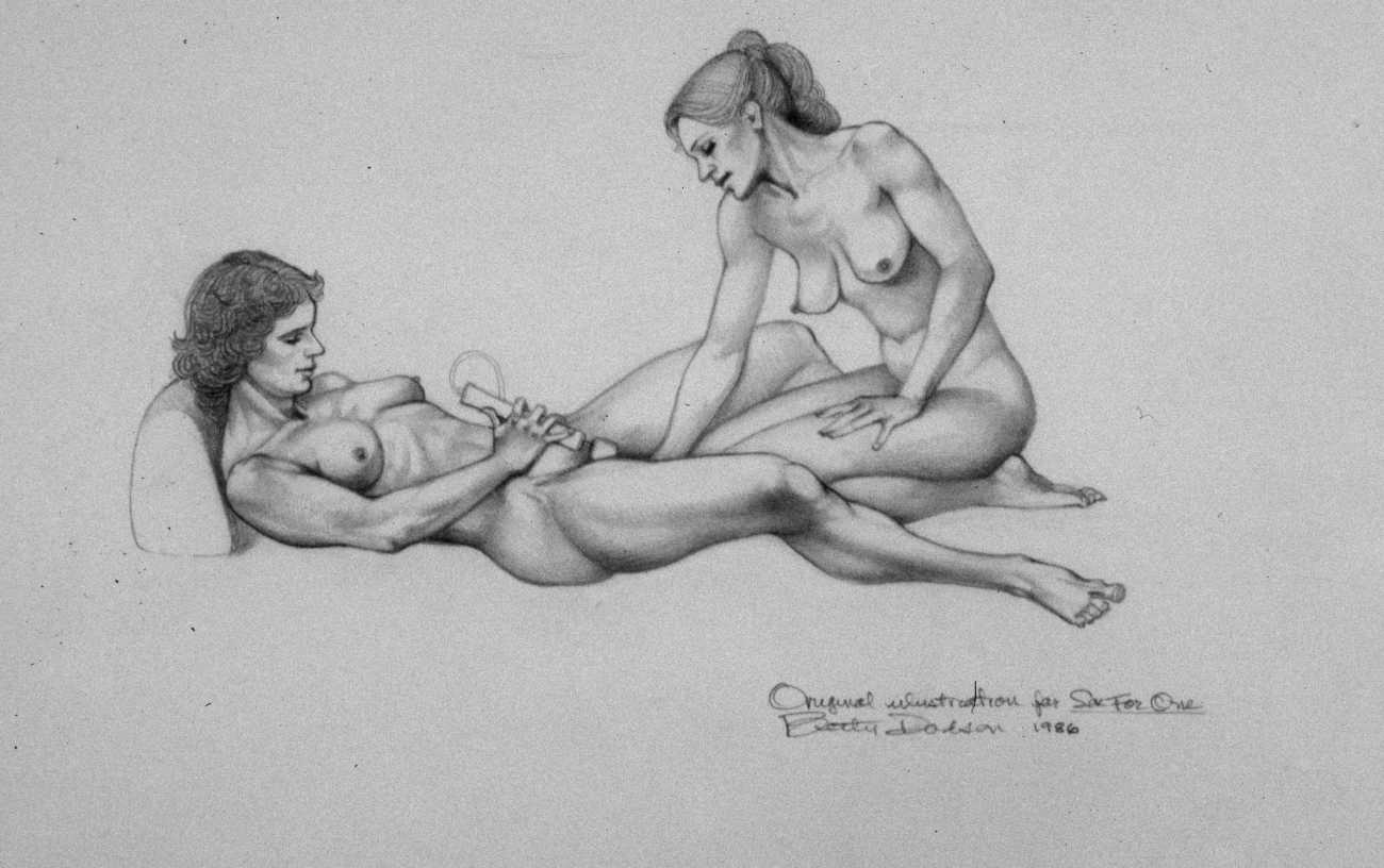 In November 2019 Betty and Carlin reorganised the gallery section of their website to include a wide range of Betty’s art, classified by subject and style – it’s well worth a visit at the Dodson and Ross website. There’s also a link there to a fascinating YouTube video of Betty talking about how her erotic art developed from wanting to portray real people having real sex to her work depicting everything from group sex to rape. Enjoy!