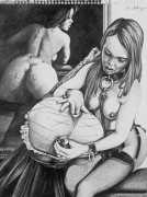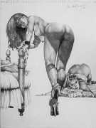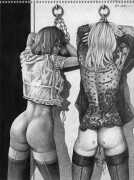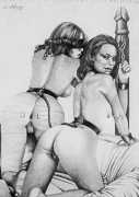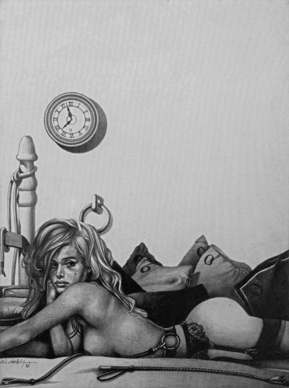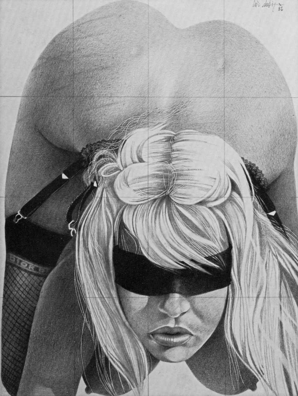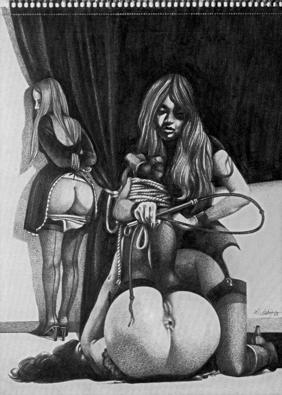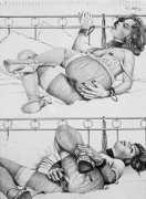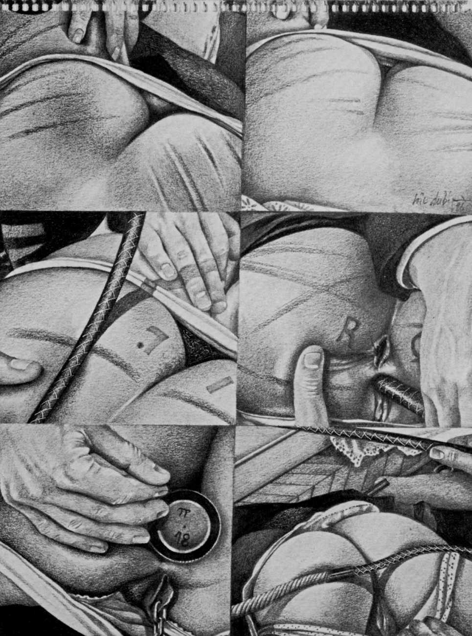 Loïc Dubigeon was first commissioned to create illustrations to accompany Pauline Réage’s Histoire d’O when the illustrated book publisher Editions Borderie saw some of Dubigeon’s nudes at an exhibition in Munich in the summer of 1981. You can see his illustrations to this edition here. He continued to produce drawings based on his response to the story, and by 1990, two years before his death, had produced nearly a hundred new works in several large sketchpads. The Club du Livre Secret published many of these in a volume called Douces violences, an expression which translates literally as ‘sweet violence’, but which in French covers a range of subjects from ‘tough love’ in relation to children’s behaviour to BDSM roleplay.