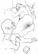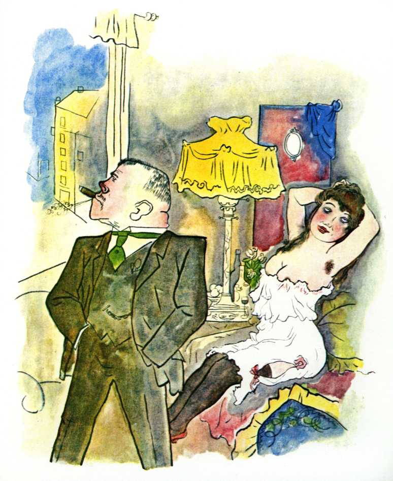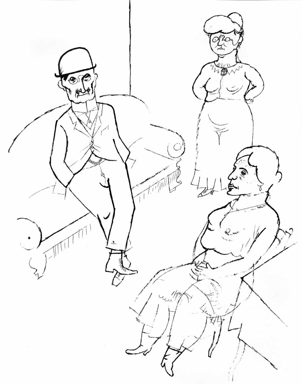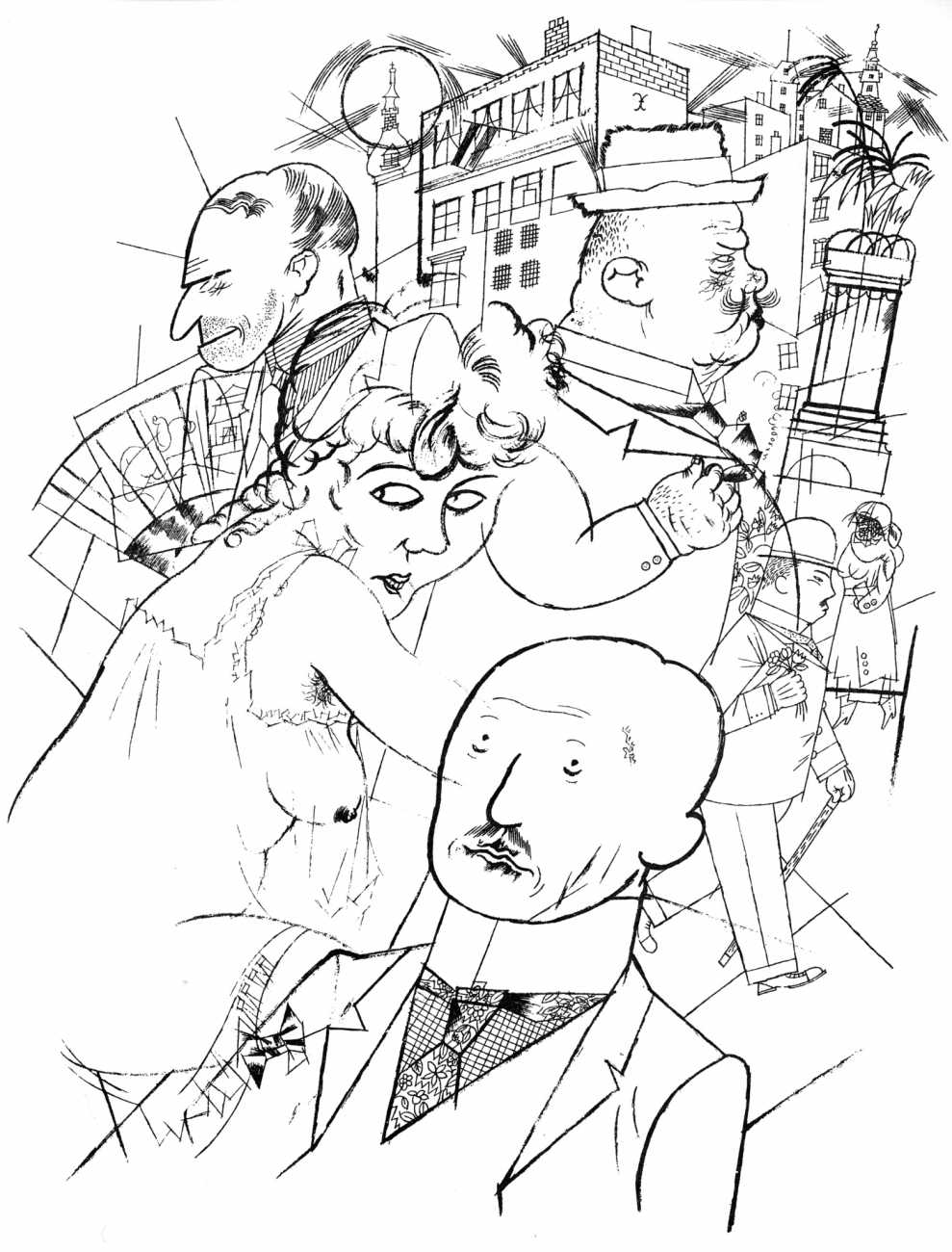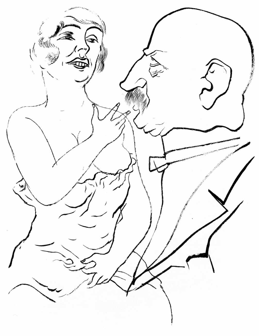 Published in 1923 by Malik-Verlag, Grosz’s Ecce Homo (echoing the famous words ‘Behold the man’, used by Pilate in the Gospel of John when he presents a scourged Jesus Christ, bound and crowned with thorns, to a hostile crowd shortly before his crucifixion, but here probably better translated as ‘Here are the people’), this infamous portfolio contains 84 offset lithographs and 16 watercolour reproductions, of which all those including an erotic element – the majority – are shown here.