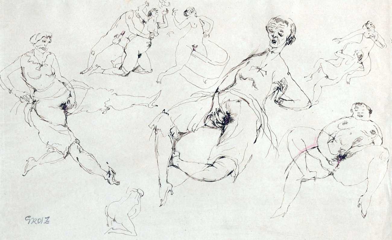 Though George Grosz is best known as a commentator on the decadence of Weimar Germany, his output as an erotic artist and illustrator has been sadly neglected. He was as biting and uncompromising (and often also surprisingly tender) about the sexual activities of his fellow Berliners as he was of their social and political proclivities, and remarkably ahead of his time in portraying sex in all its glorious and messy detail.