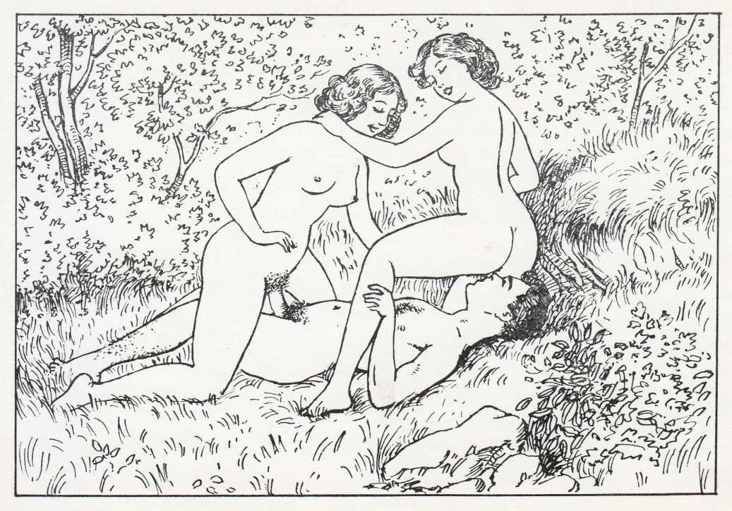 Mémoires de ma puberté (Memoirs of my Puberty) is one of a series of illustrated erotic titles published in the 1950s by the Toulouse-based publisher Francis Flores. The author is shown as ‘L. Machaut’, almost certainly Flores himself; the illustrator is the ubiquitous Anon. Flores’ output had hardly hit the shelves before being banned by the French government in 1960, which makes them quite rare collectors’ items. To make the most of his material, Flores sometimes published exactly the same books with different titles – Mémoires de ma puberté is sometimes seen with the title Suzanne écolière d’amore (Suzanne, Student of Love).