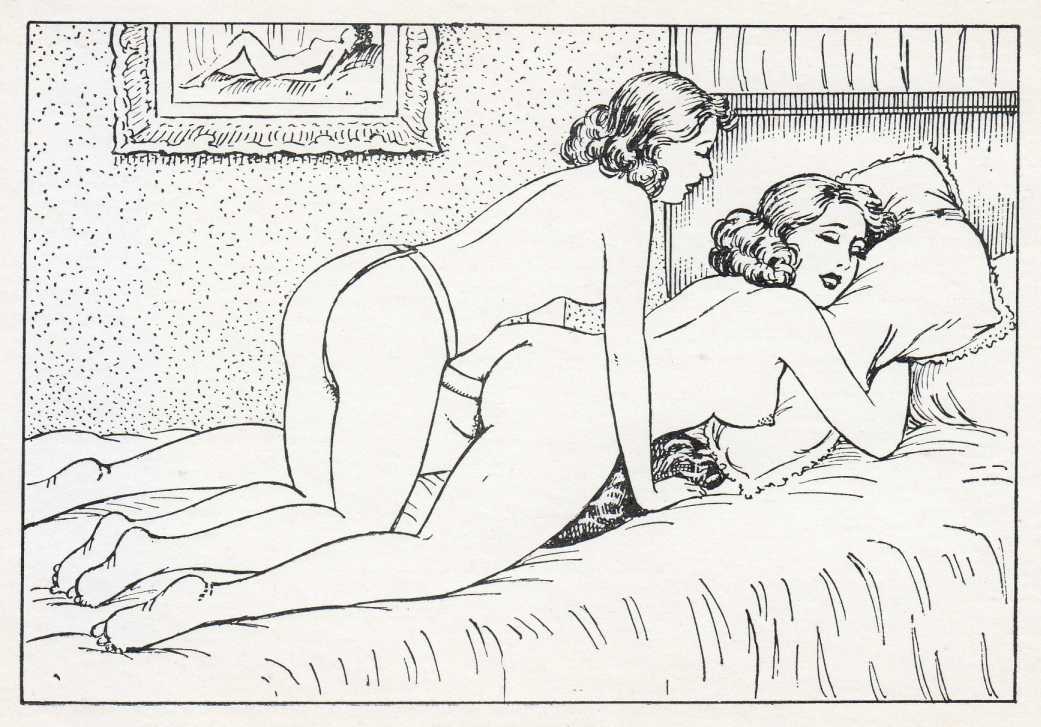 ‘With a mechanical gesture he subjected his rod, already very nervous, to an up and down movement. No longer afraid, and seeing Suzanne with her head on the pillow so close, so naked, he launched his discharge into the lavender-scented sheets with a groan of happiness.’ Very 1950s!