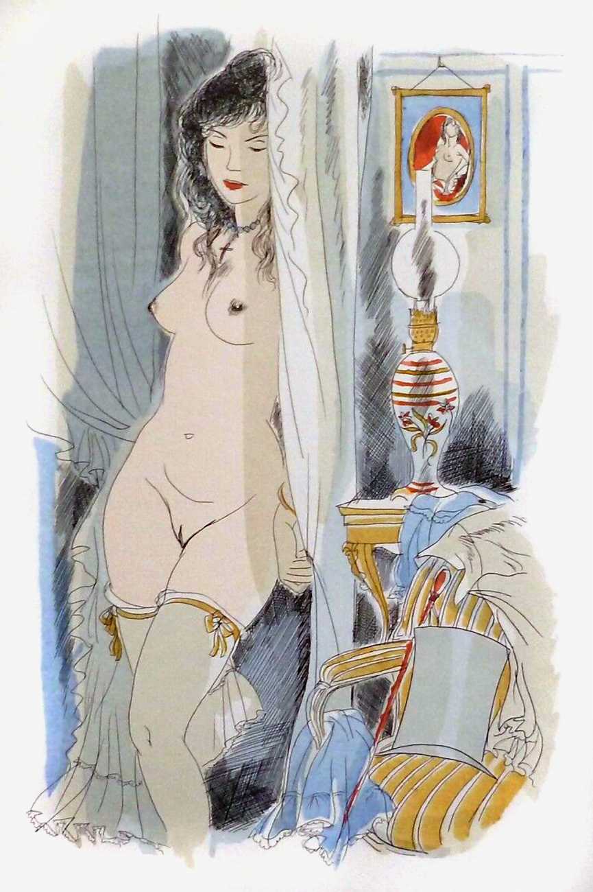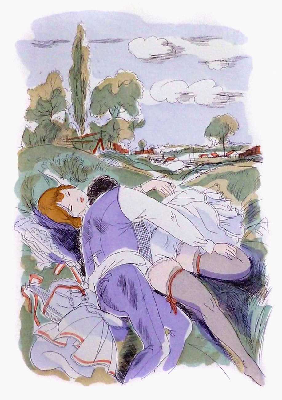 Un été à la campagne: correspondance de deux jeunes parisiennes, recueillie par un auteur à la mode (A Summer in the Countryside: The Correspondence of Two Young Parisiennes, Collected by a Fashionable Author) is little more than a vehicle for a commissioned series of illustrations featuring naked young women, but it does show clearly how Barret had segued easily into the style of the 1960s.