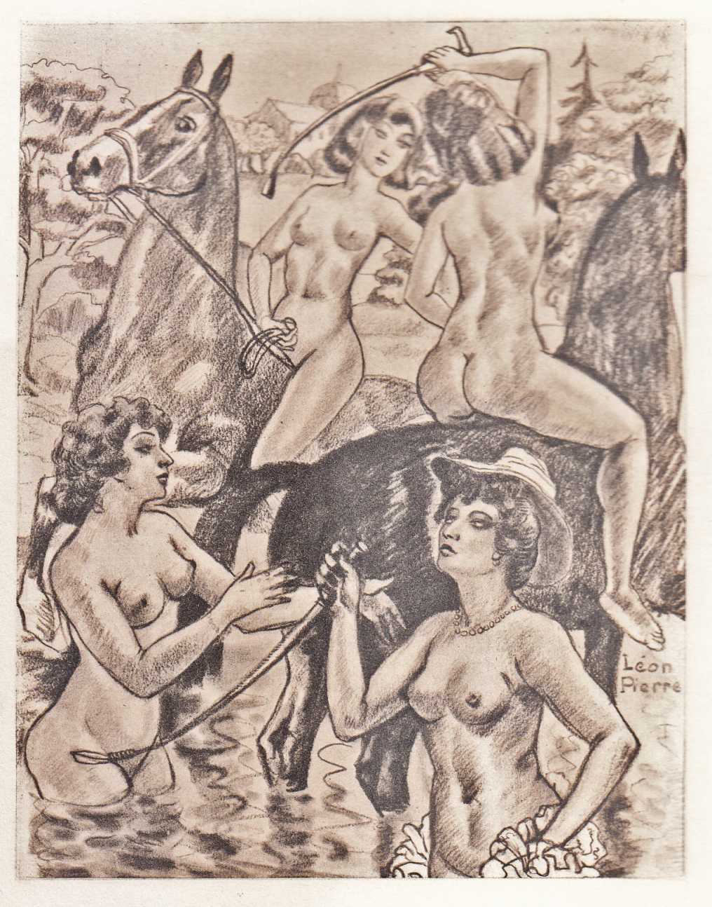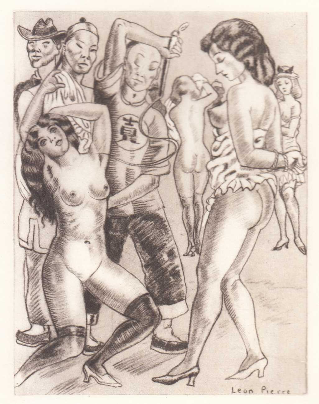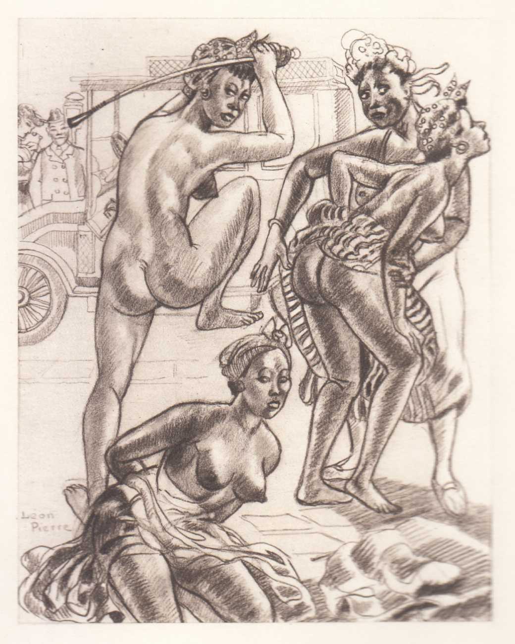 Using his Léon Pierre alter ego, Pierre Noël illustrated this and two subsequent Fort titles –Diana gantée (Diana in Gloves) in 1932, and Le harem océanien (The Oceanian Harem) in 1935.