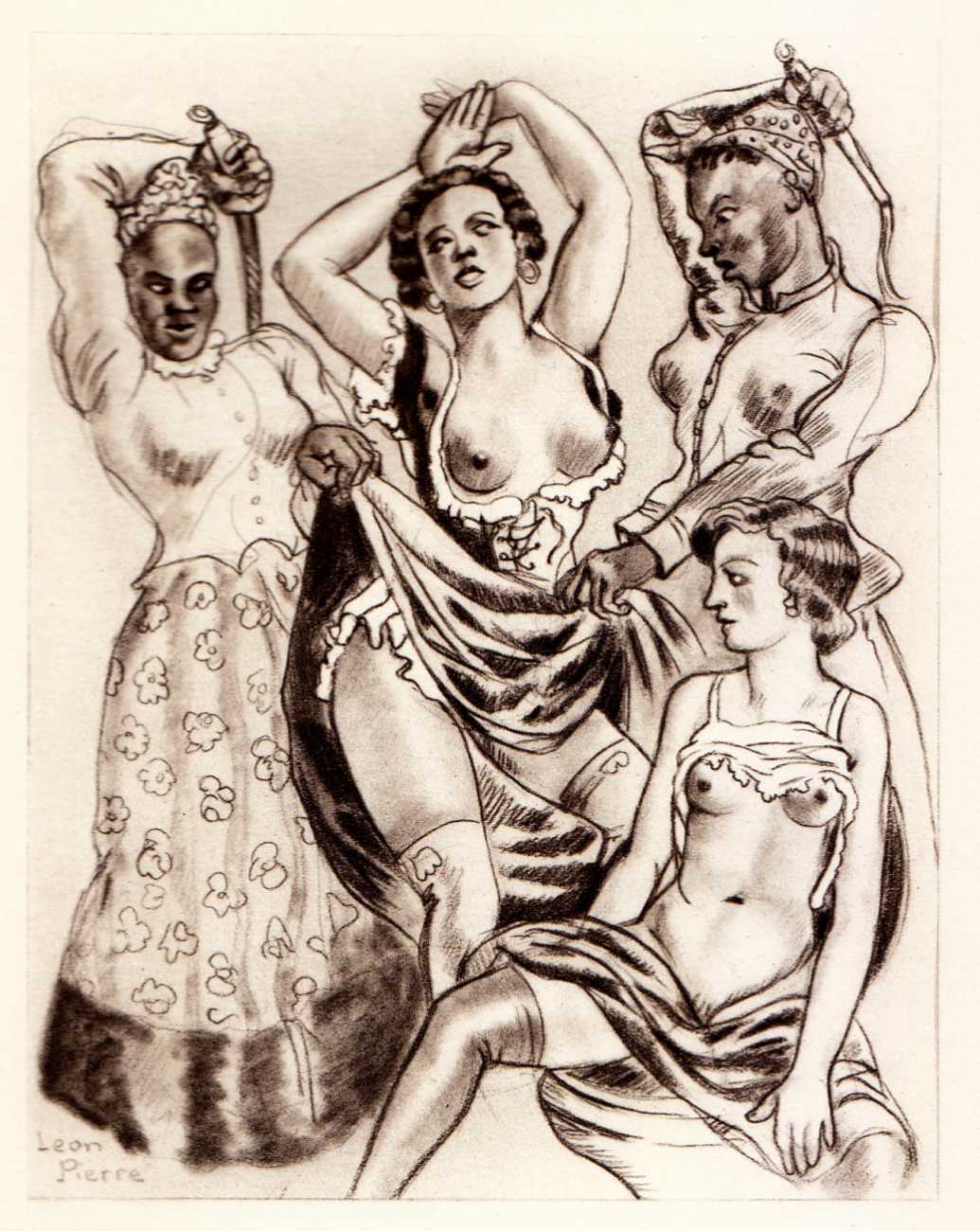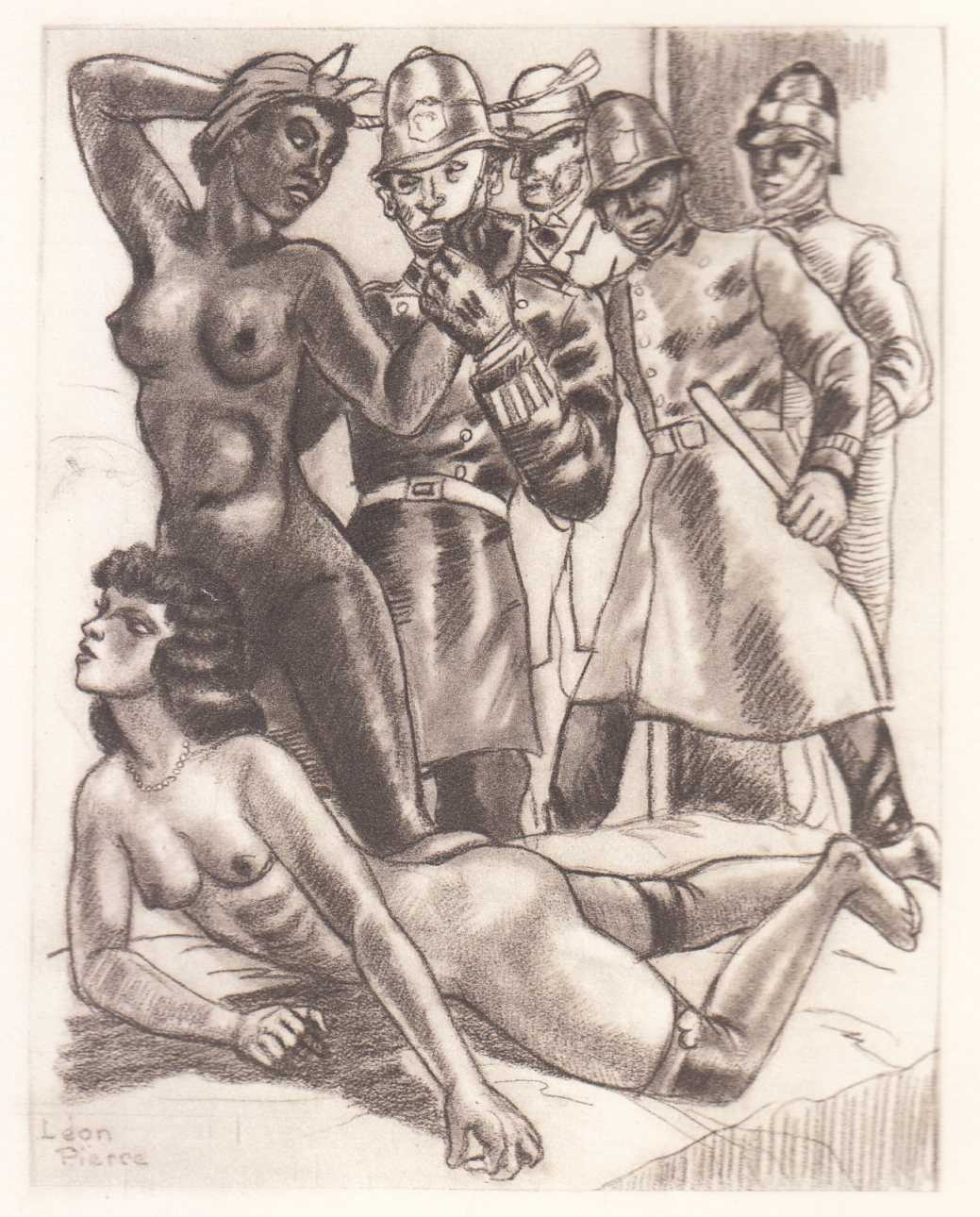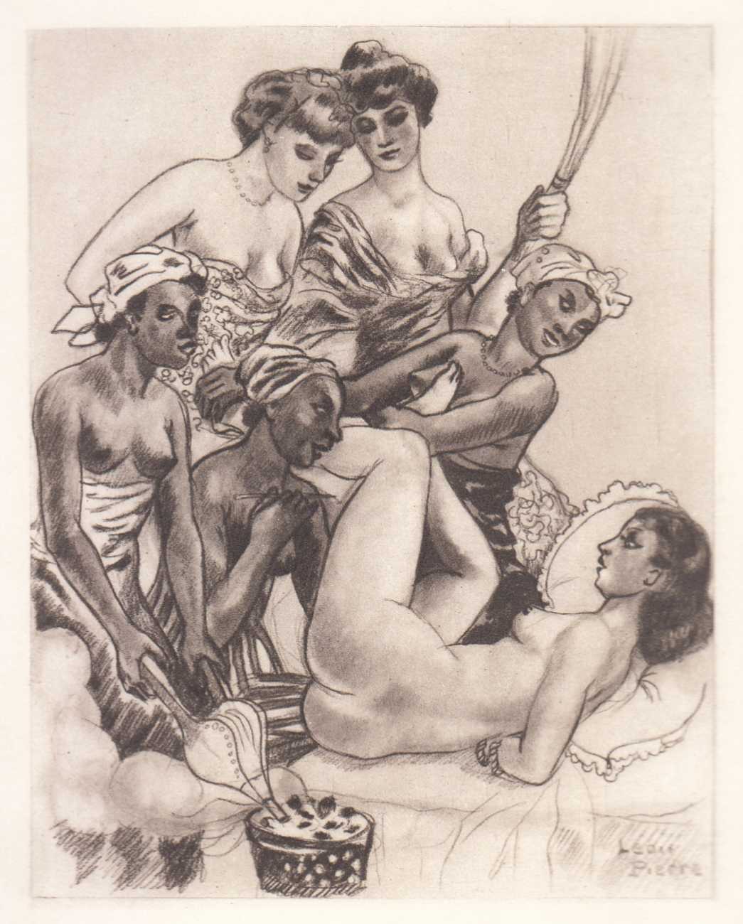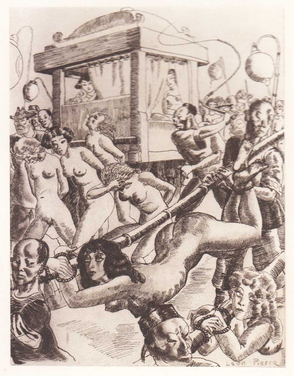 Using his Léon Pierre alter ego, Pierre Noël illustrated this and two subsequent Fort titles –Diana gantée (Diana in Gloves) in 1932, and Le harem océanien (The Oceanian Harem) in 1935.