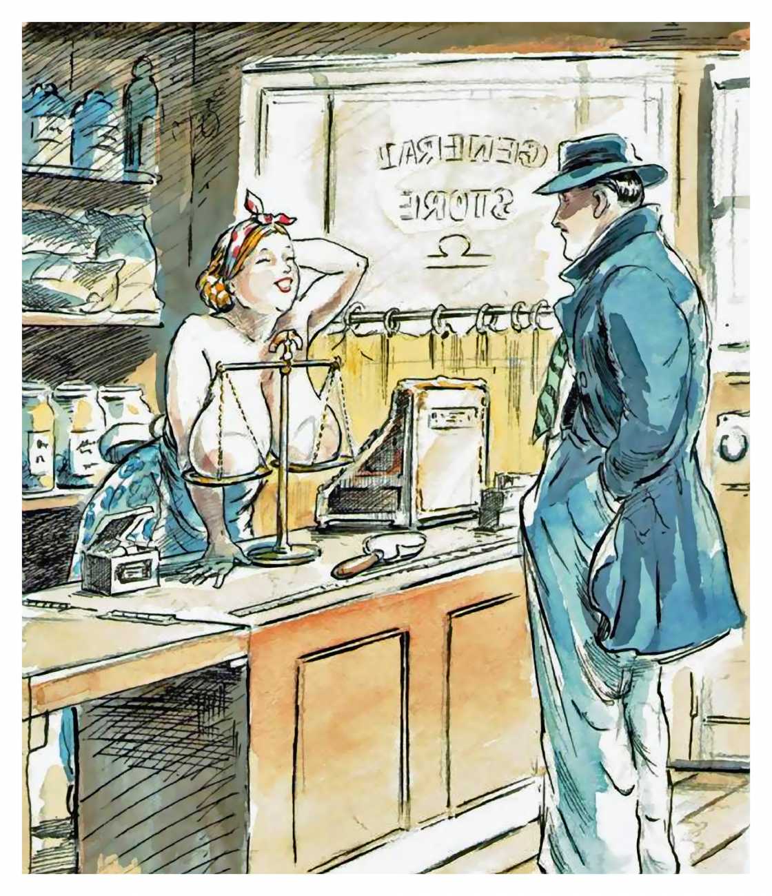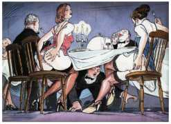 Here we have only included finished colour work; if you want to see his sketches and cartoon strips you will need to find your own copy of Fireside Orgies.