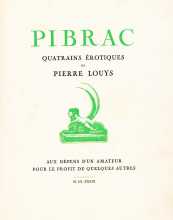 Like the rest of Pierre Louÿs’ voluminous output of erotica, Pibrac (sometimes spelt Pybrac) was not published during his lifetime, but instead figured among the many secret manuscripts discovered after his death, tucked and filed away, and subsequently auctioned off and scattered among collectors. It would see its first clandestine publication in 1927, two years after the author’s death.