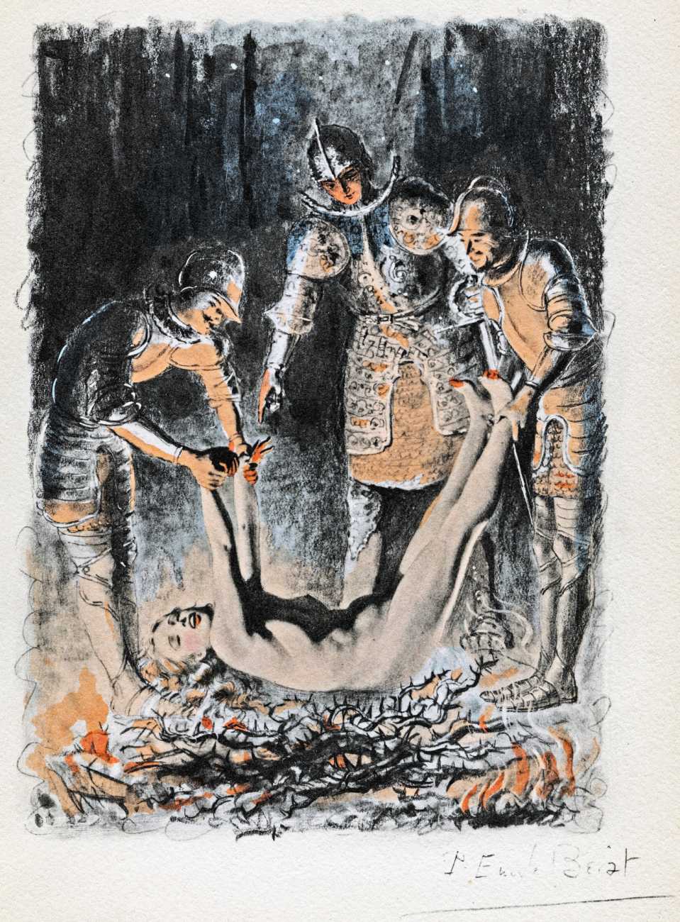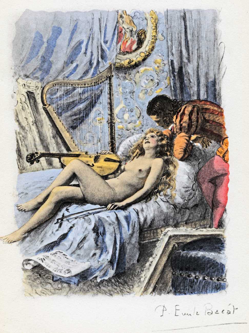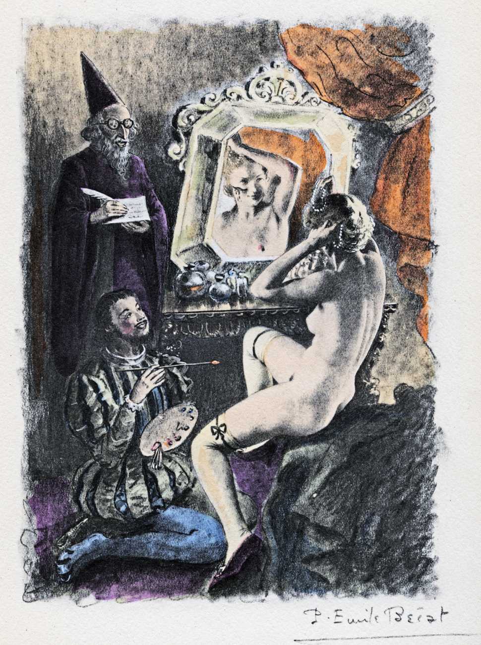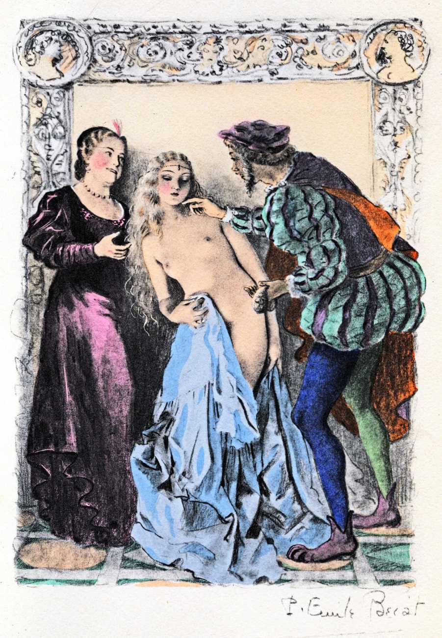 Pietro Aretino, Italian renaissance author, playwright, poet, satirist and blackmailer, has for centuries been an inspiration for later erotic writers and illustrators, and his Les ragionamenti (The Reasonings) of 1534–6 provided Bécat and Éditions de la Nef d’Argent with yet another reason for producing a set of classic Bécat drypoints.