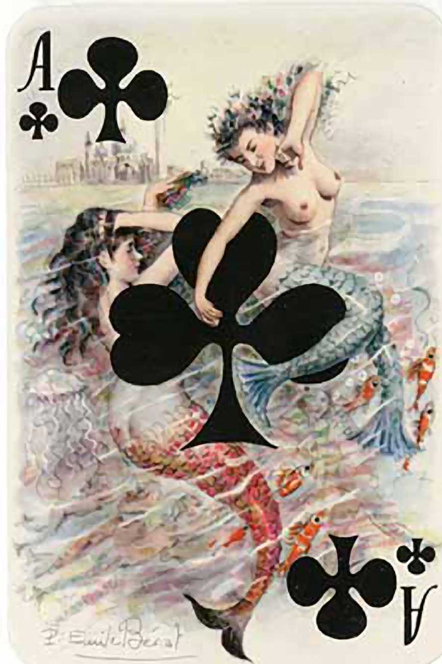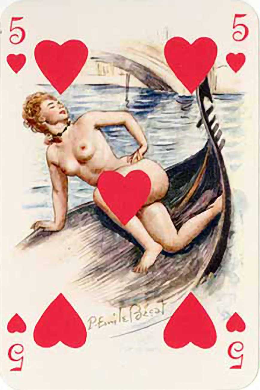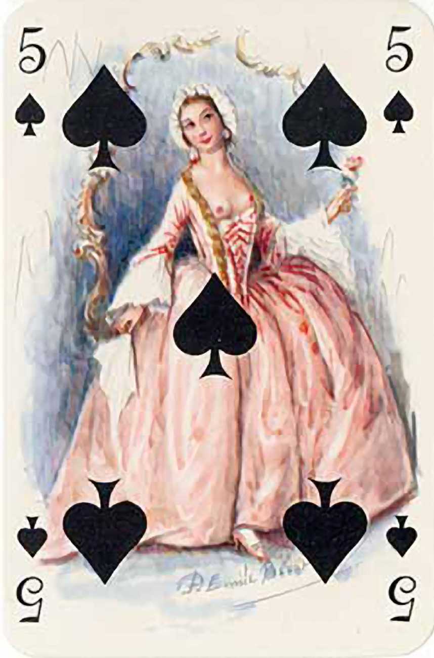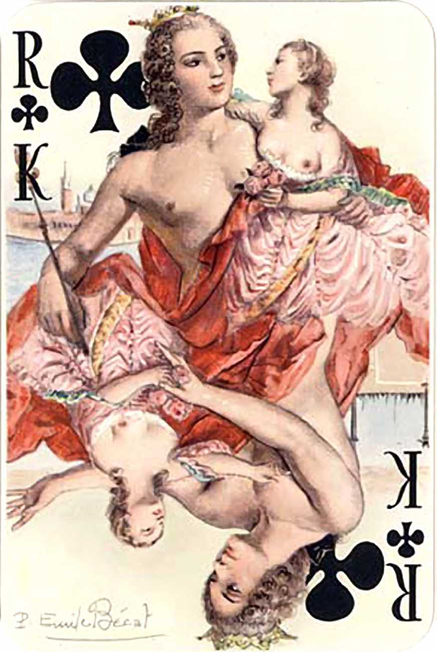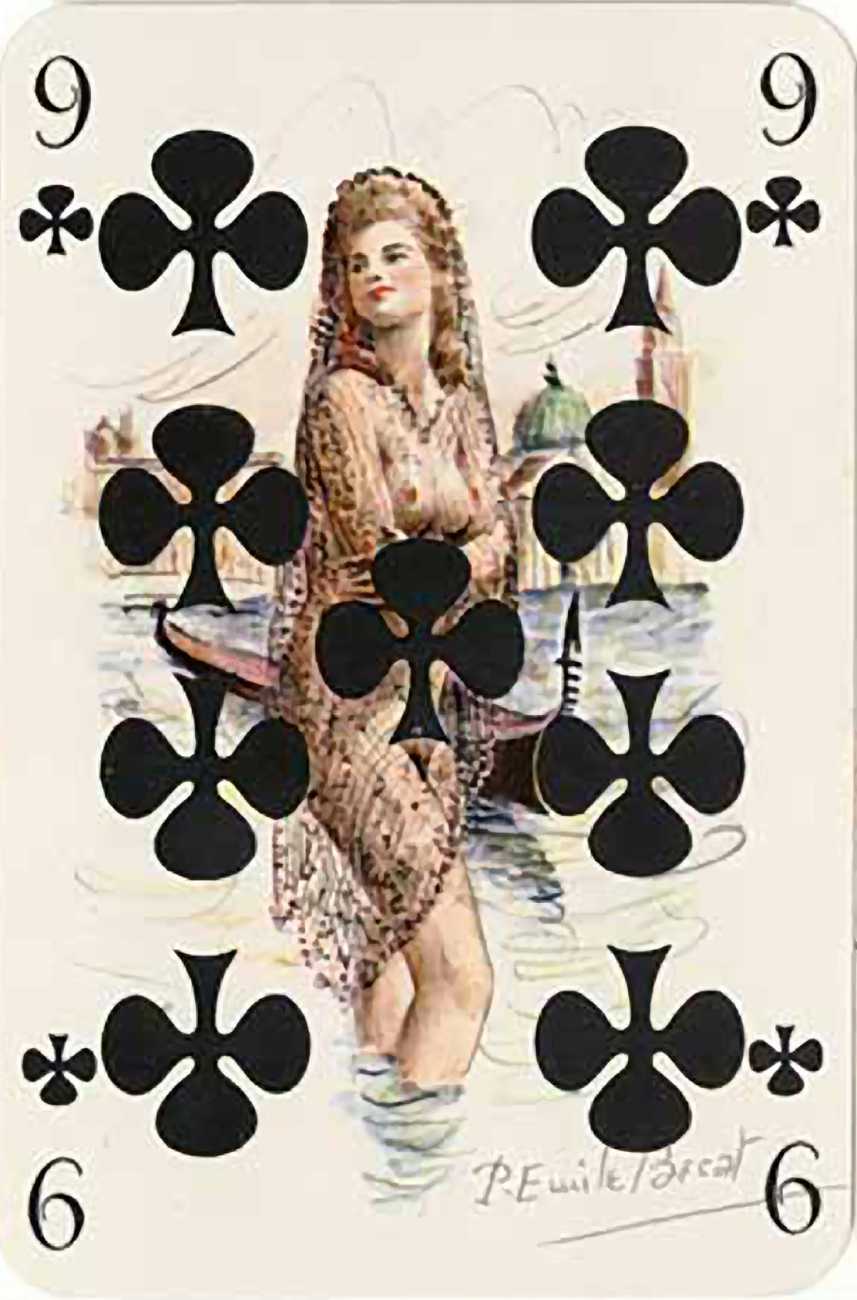 Following the success of the Florentin pack in 1954, the Paris-based playing card manufacturer Éditions Philibert commissioned Bécat to produce another set of illustrations for a de luxe Mémoires de Casanova pack. Many of the illustrations for the Casanova pack came from material he had amassed over a lifetime of creativity, and it was published shortly after his death. The Casanova cards were produced to a high standard, with gilded edges.