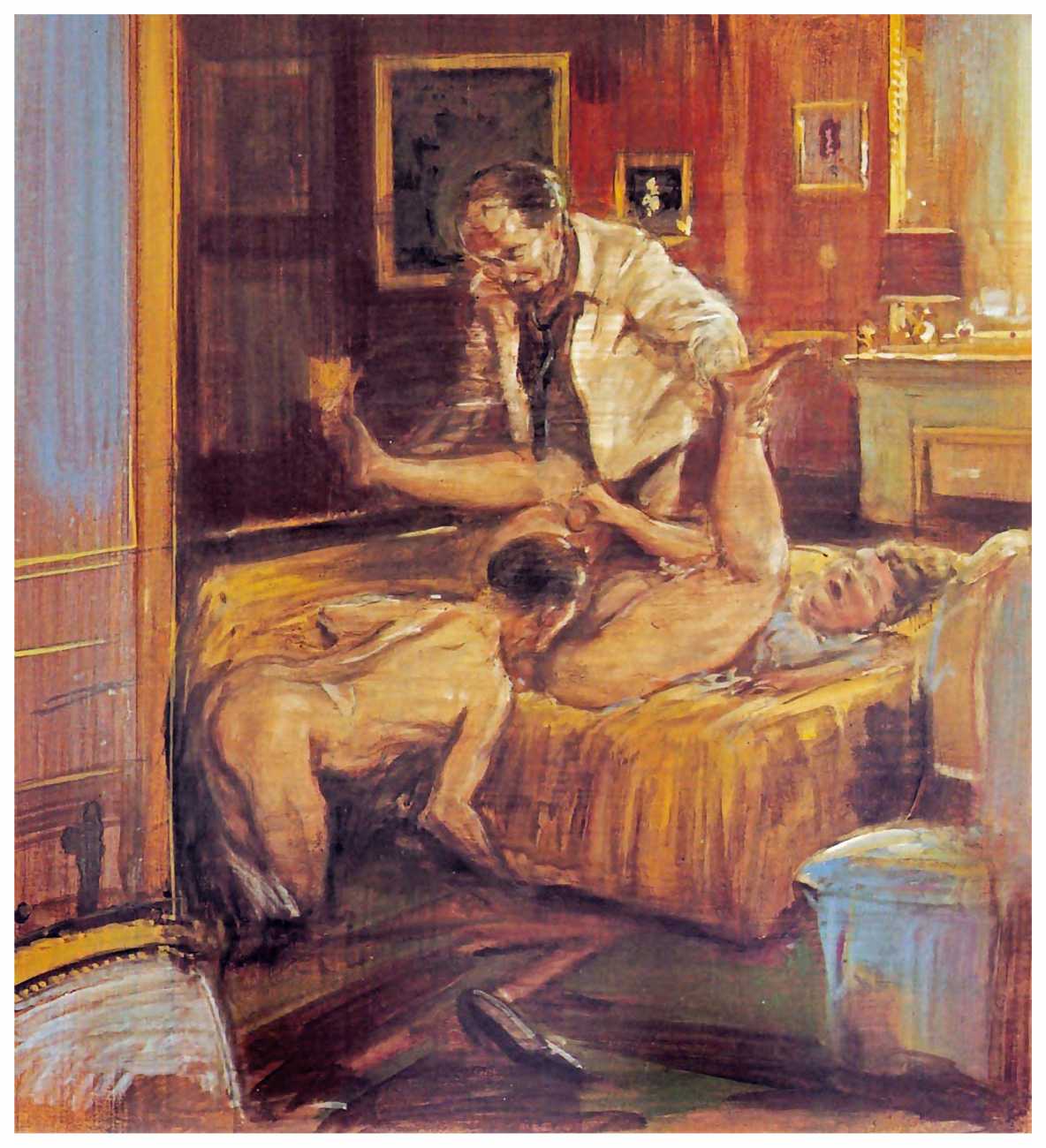 Honesterotica follower Ian Mulder has created an English-language narrative in the form of an anonymous illustrated memoir to accompany the L’invitation paintings – The Welcome Inn can be found here. Enjoy!