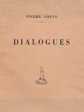 Pierre Louÿs’ Dialogues, short for Douze douzains de dialogues, ou petites scènes amoureuses (Twelve Dozen Dialogues: Little Love Scenes) is a series of ninety short erotic texts (the 144 of the title originally planned were never completed) written between 1894 and 1899, and published for the first time after the death of the writer in 1927 by the bookseller Robert Télin, with illustrations by André Collot. The literary form was inspired by the Dialogue of Courtesans by Lucien de Samosate, a text for which Louÿs had great admiration. A sample from the text is given below, in French and English.