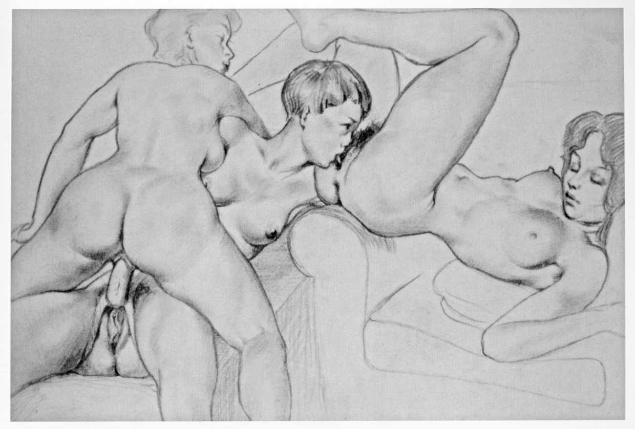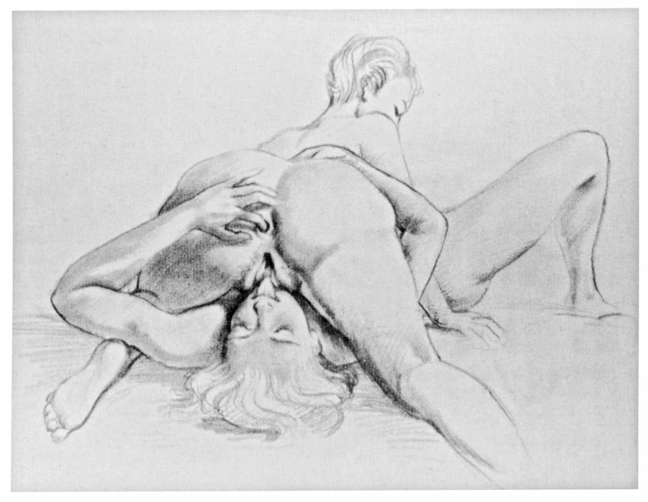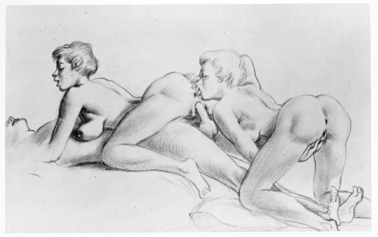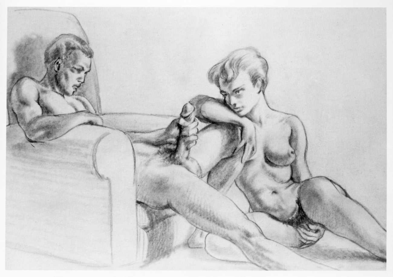 The Lost Drawings represent a cross section of Tom Poulton’s sexual interests, from almost anatomical vulvas to inventive group sex. For being created during the 1950s they are far in advance of almost any other erotica of the time, offering their rare viewer a detailed manual of sex education, with women as well as men experiencing real pleasure. Both when they were created and now, they also demonstrate brilliant life drawing technique and well repay study for this alone, never mind the erotic stimulation they elicit. If you are an artist yourself, you might think about making Tom Poulton one of your inspirations.