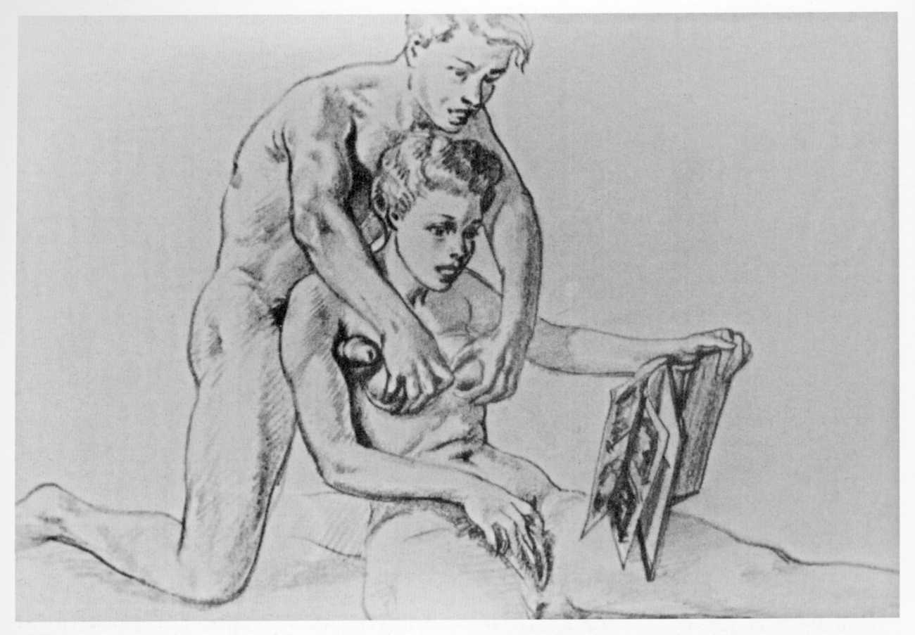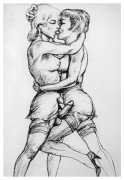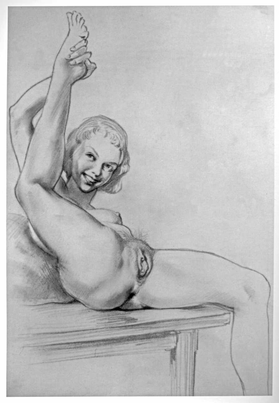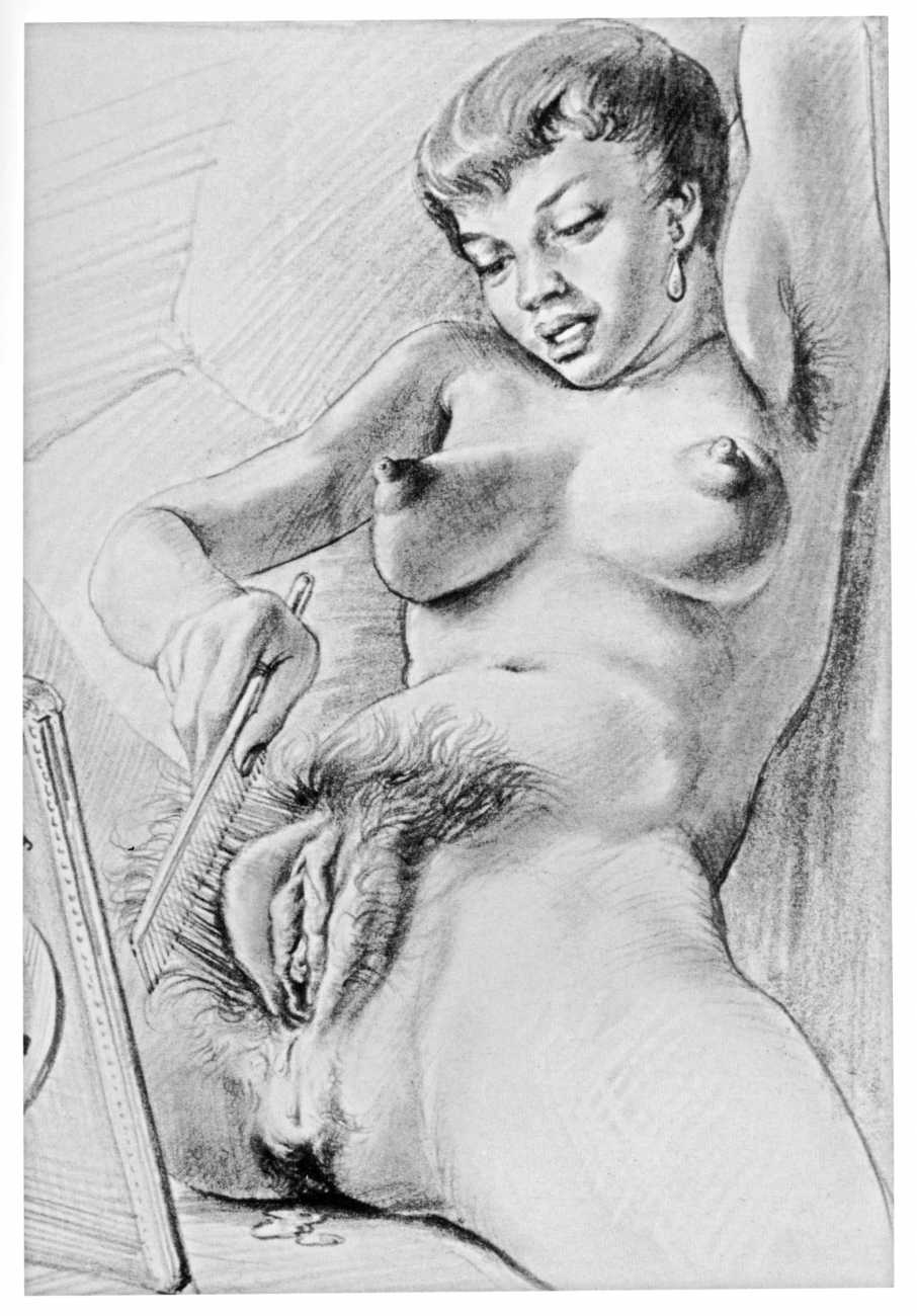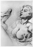 The Lost Drawings represent a cross section of Tom Poulton’s sexual interests, from almost anatomical vulvas to inventive group sex. For being created during the 1950s they are far in advance of almost any other erotica of the time, offering their rare viewer a detailed manual of sex education, with women as well as men experiencing real pleasure. Both when they were created and now, they also demonstrate brilliant life drawing technique and well repay study for this alone, never mind the erotic stimulation they elicit. If you are an artist yourself, you might think about making Tom Poulton one of your inspirations.