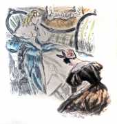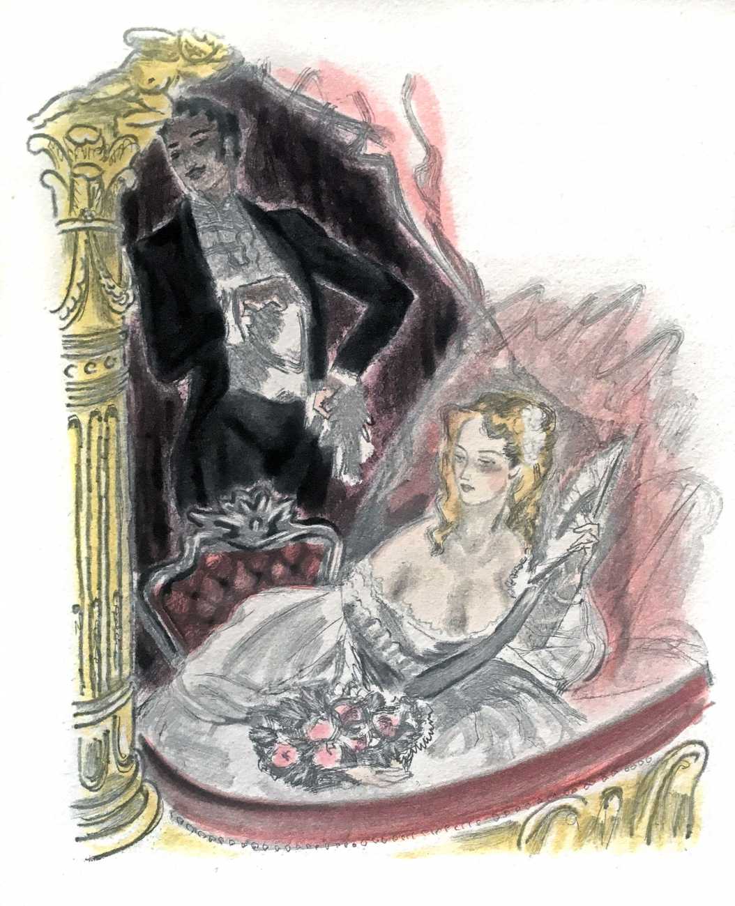 Berthomme Saint-André was commissioned to illustrate Fortunio in 1946, following in the footsteps of Gerda Wegener and Paul-Émile Bécat. His illustrations are skilful, but lack the atmosphere and detail of his predecessors; nobody has illustrated Fortunio better than Wegener – you can see her versions here.