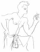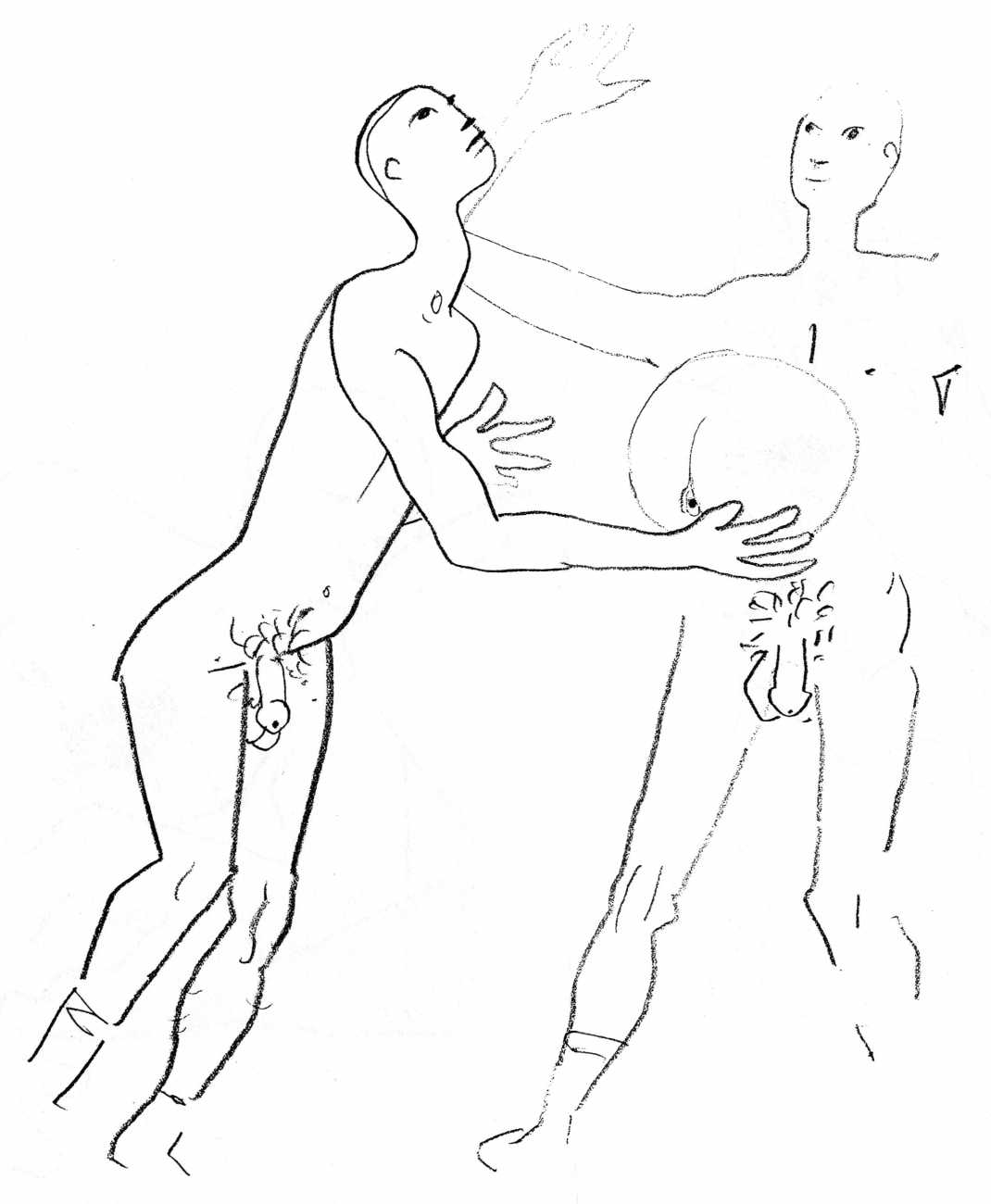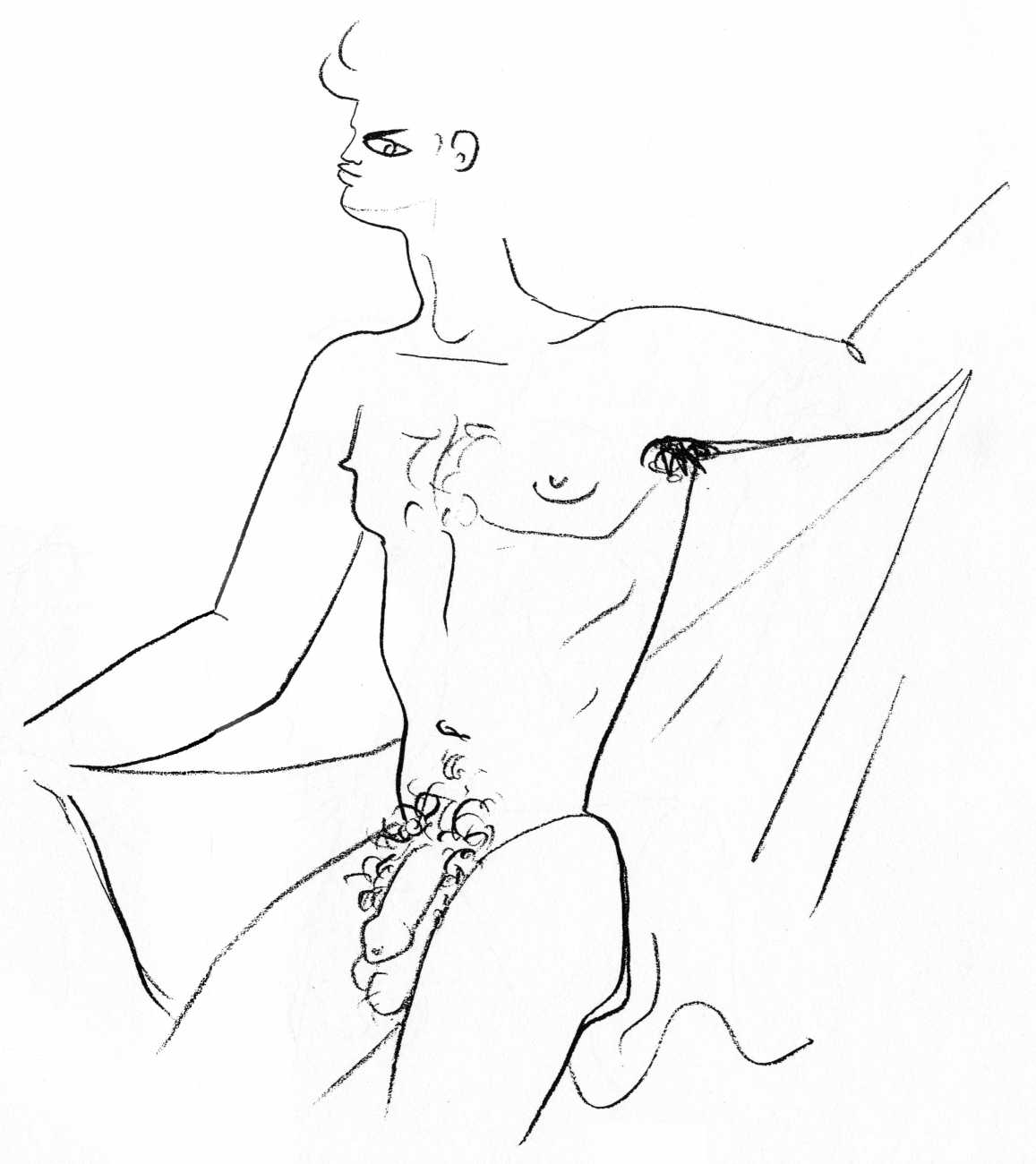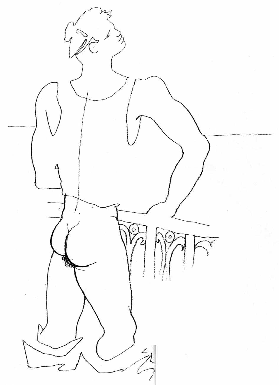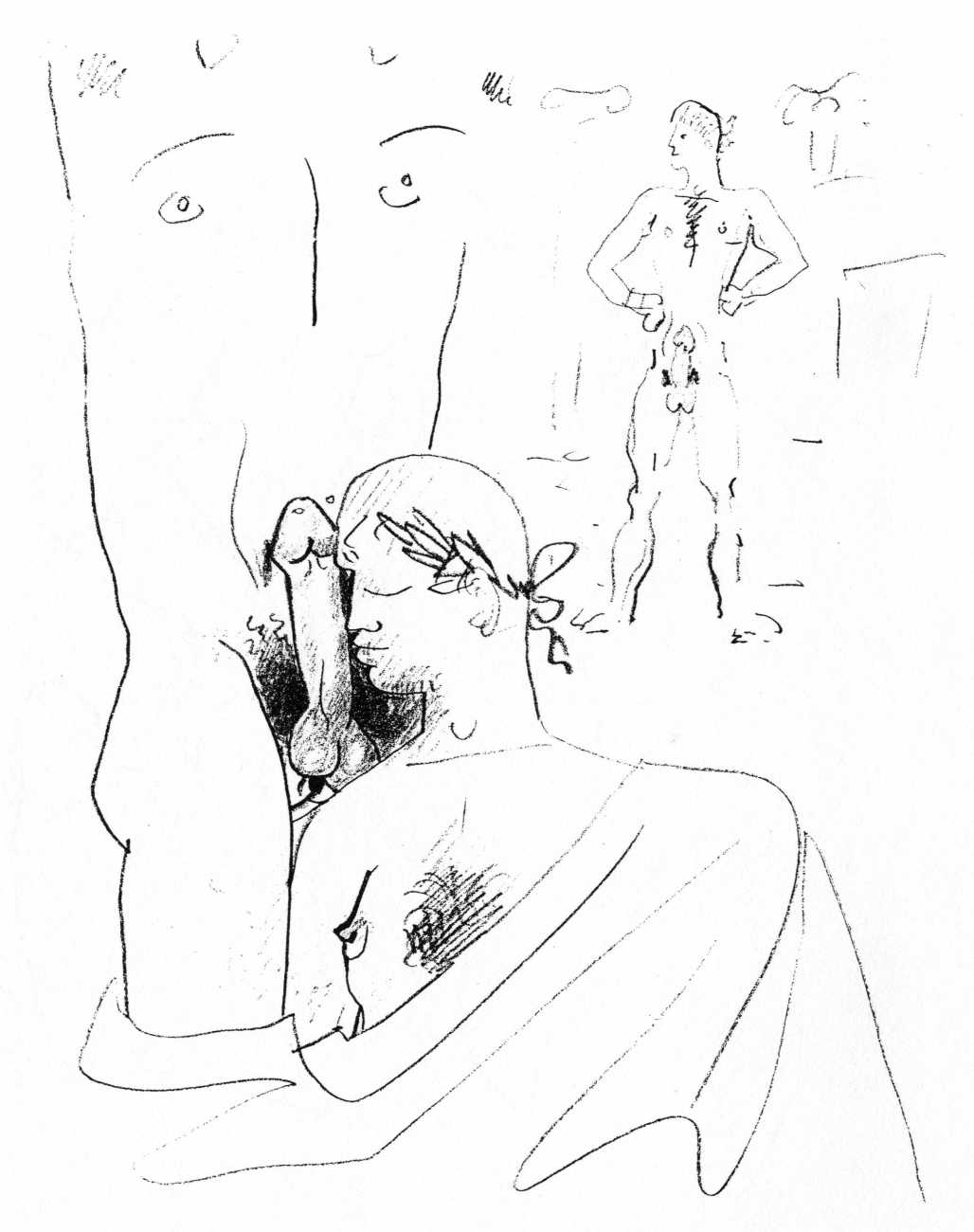 It was not until thirty years after Cocteau’s death that a comprehensive collection of his homoerotic drawings was brought together, and that thanks to pioneering London publisher Peter Owen and Cocteau’s biographer Margaret Crosland. The Passionate Penis showcases 56 drawings, mostly in dark pencil, spanning Cocteau’s artistic career from the 1930s to the 60s, as the review in Boyz magazine commented, ‘putting the cock solidly in Cocteau’.