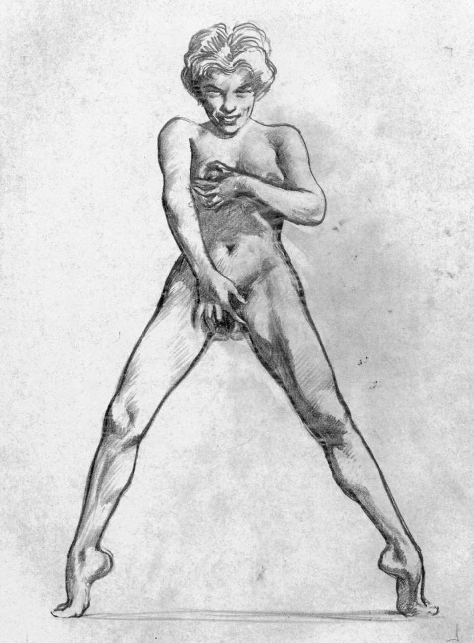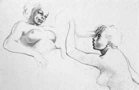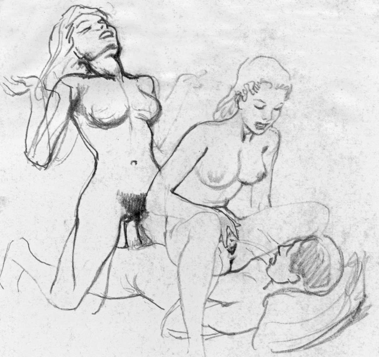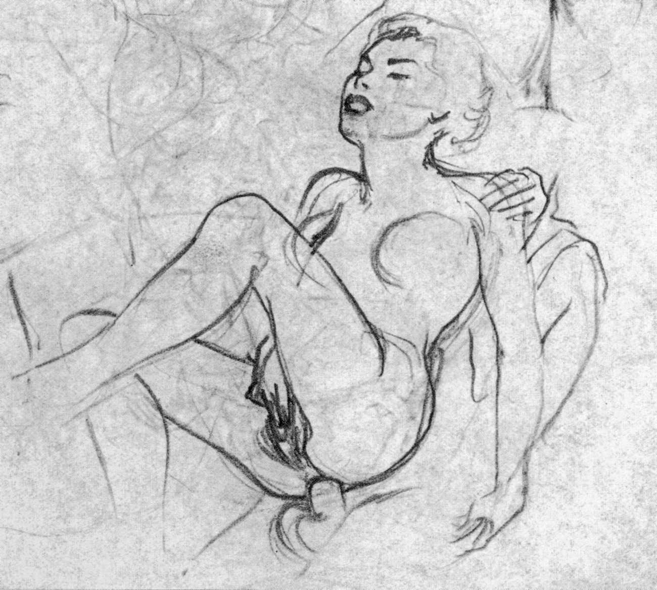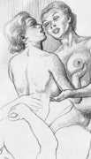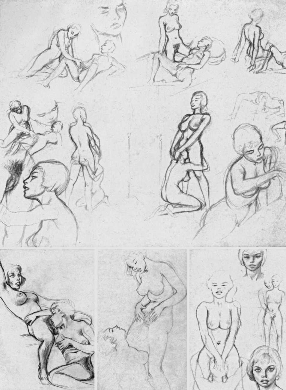 Following the success of The Secret Art of Tom Poulton a year earlier, Jamie Maclean of the Erotic Print Society quickly followed it up with a volume to include what at that time he believed to be the balance of Tom Poulton’s complete work. The second volume, An Artist’s Secret Sketchbook, contains more than 160 previously-unpublished drawings. As Maclean says on the back cover of the book, ‘Here we are given a glimpse of some of the artist’s most uninhibited and spontaneous work. His sketches are not always even in their detail, but always lively in observation and innovative in content.’