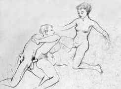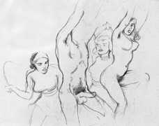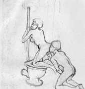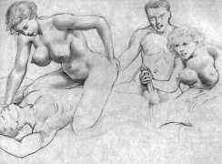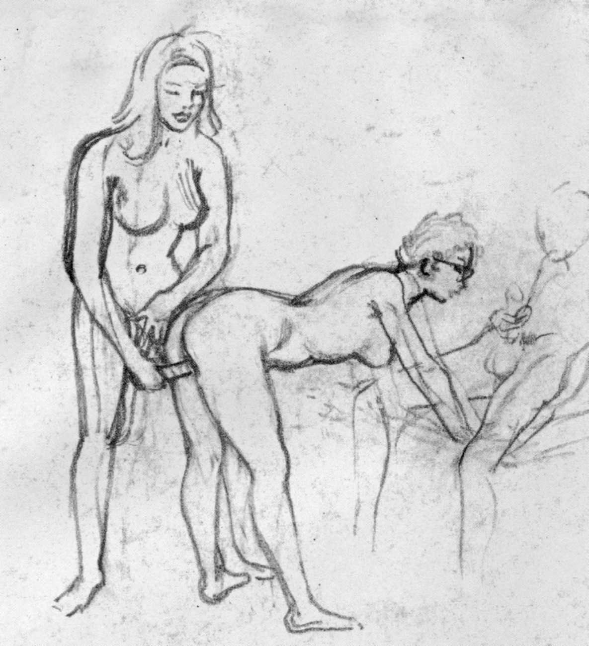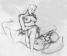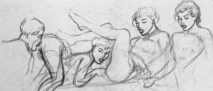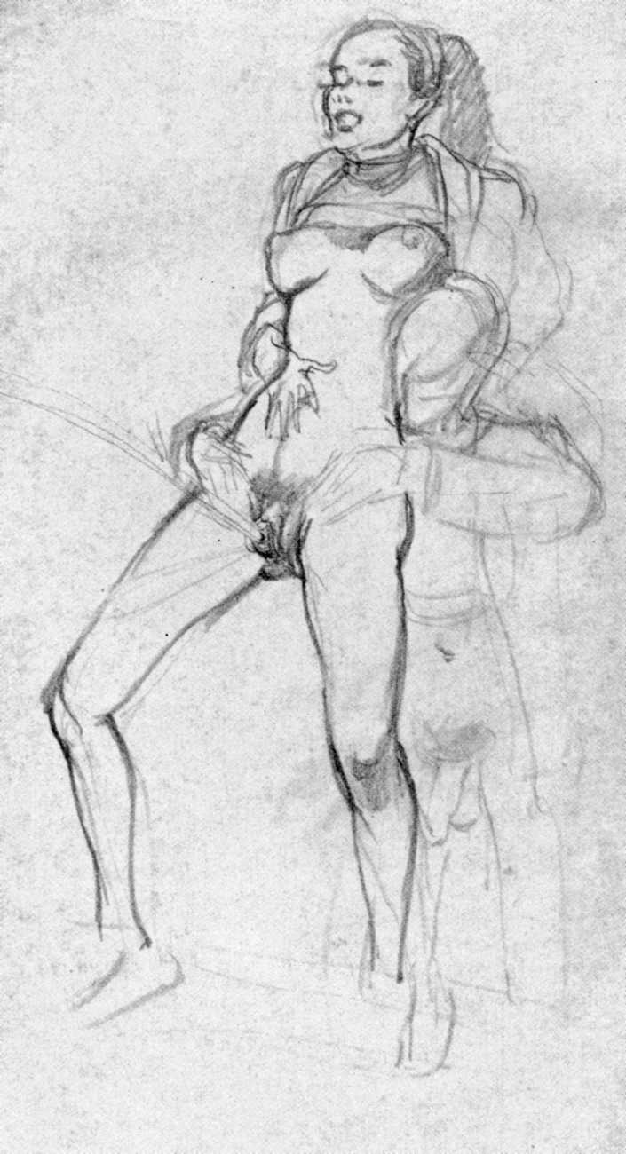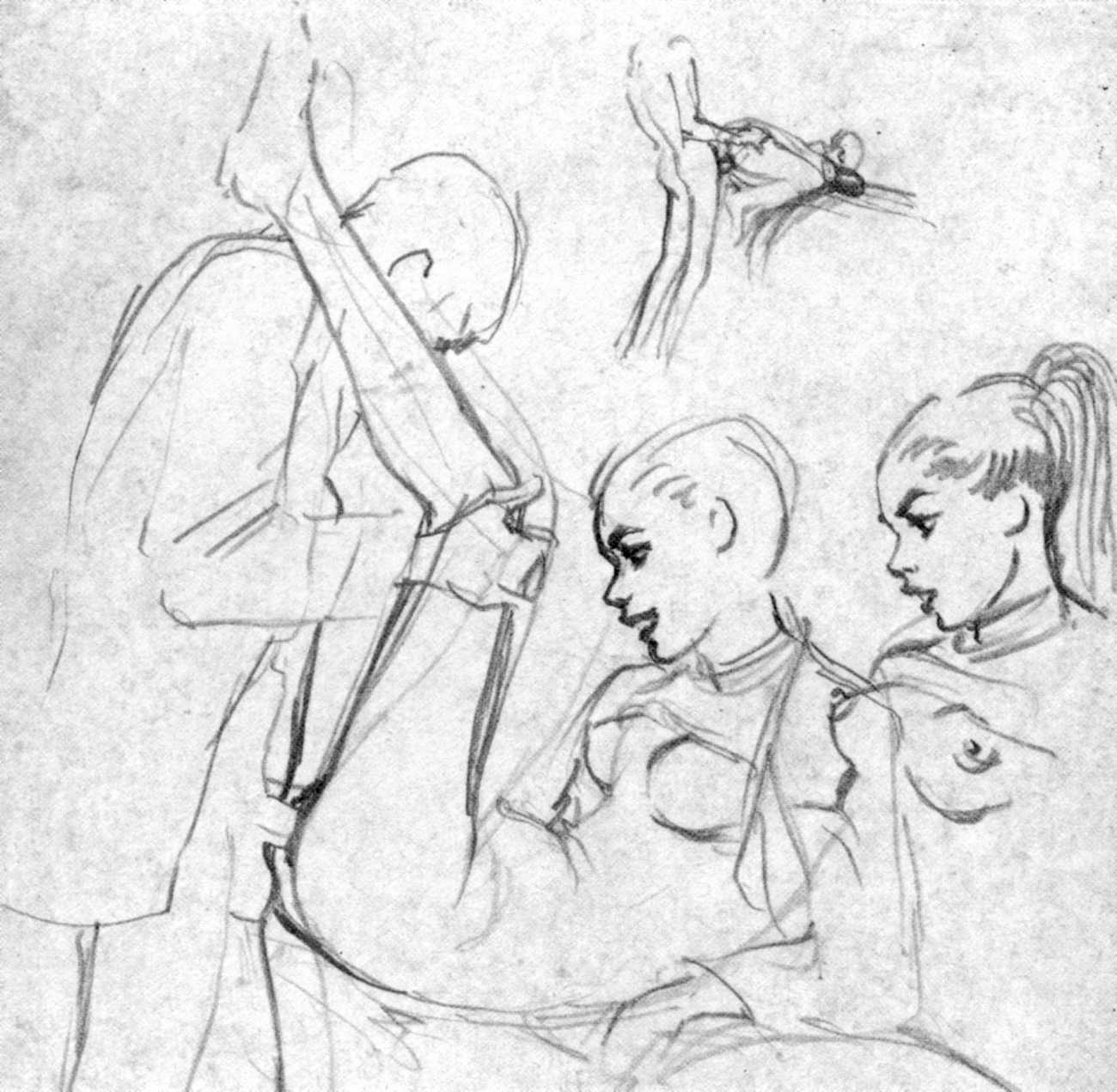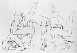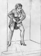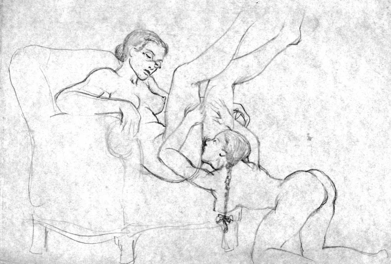 Following the success of The Secret Art of Tom Poulton a year earlier, Jamie Maclean of the Erotic Print Society quickly followed it up with a volume to include what at that time he believed to be the balance of Tom Poulton’s complete work. The second volume, An Artist’s Secret Sketchbook, contains more than 160 previously-unpublished drawings. As Maclean says on the back cover of the book, ‘Here we are given a glimpse of some of the artist’s most uninhibited and spontaneous work. His sketches are not always even in their detail, but always lively in observation and innovative in content.’
