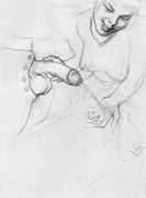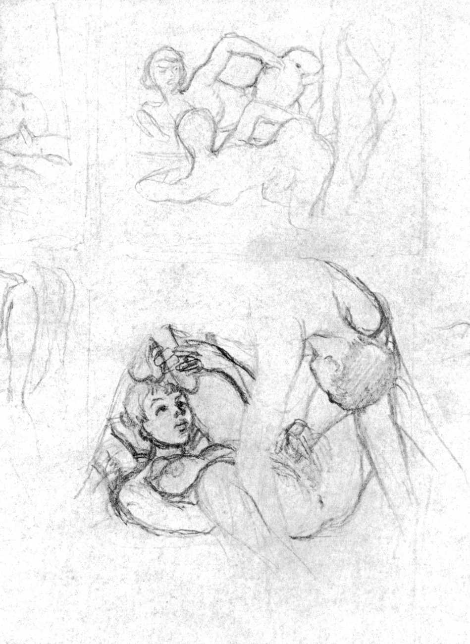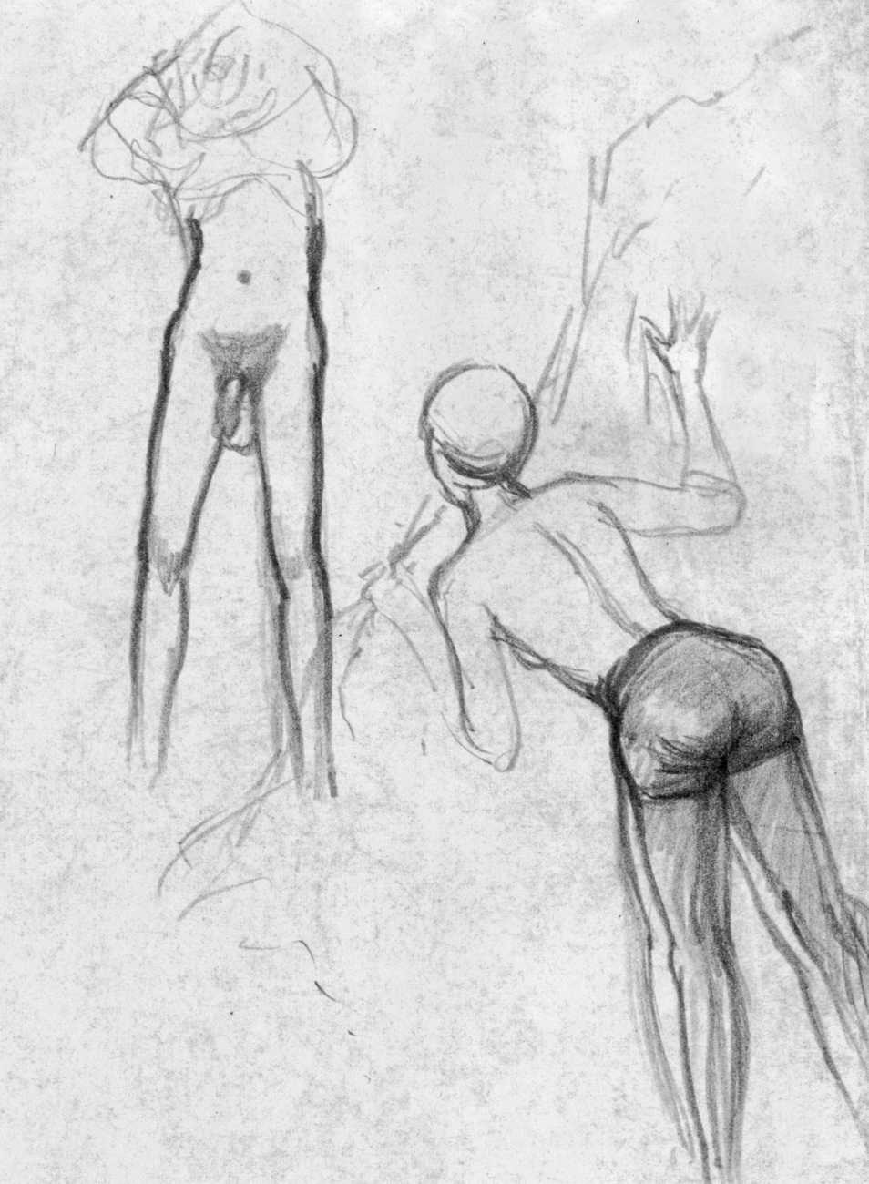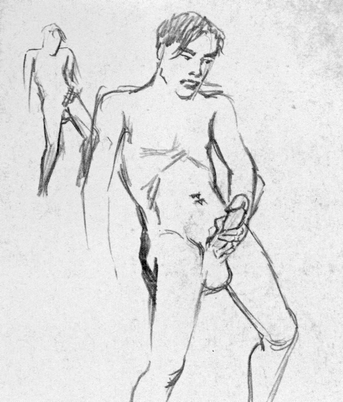 In the printed book the drawings are set on a pale cream background, which tends to draw attention away from the detail; here we have taken them back to monochrome, both to allow the drawings to speak for themselves and for consistency with the two other Poulton portfolios.