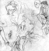 Many of the drawings are roughs and preliminary versions, but they provide an insight into the way Poulton worked, often filling a sheet with multiple sketches and quickly-sketched detail. There are also many finished drawings, demonstrating his considerable artistic skill.
