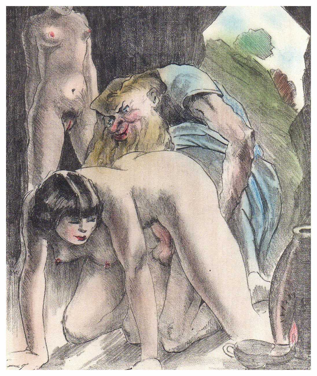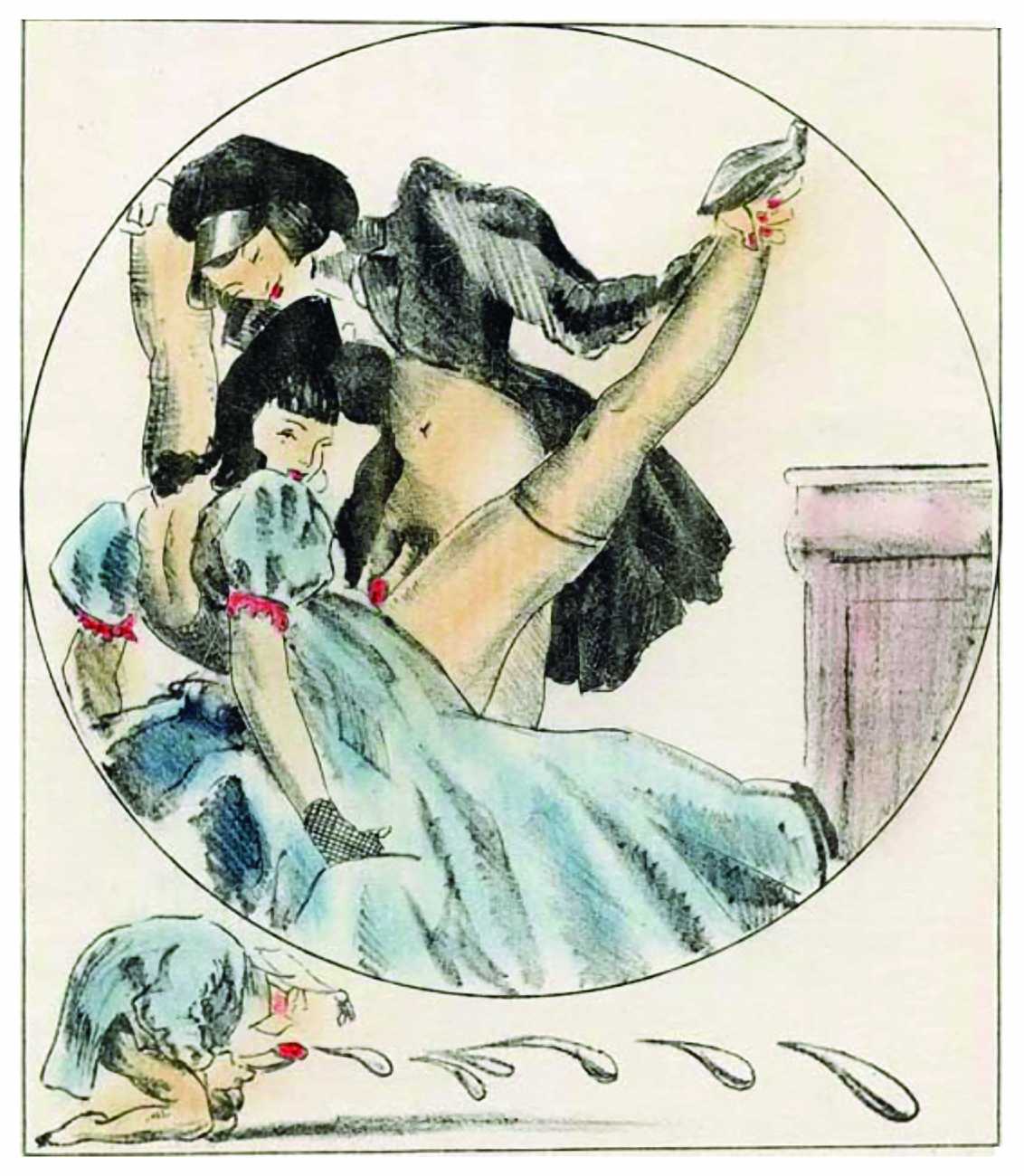 Collot clearly enjoyed the freedom and inspiration of Bernard’s collection, which includes classic tales like ‘The Examination of Flora’, ‘The Priapic Ode’, and ‘The Bearded Woman’. His witty illustrations combine the erotic with the comic in equal measure.