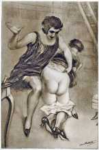 Spanking art seems to be flavour of the month as we bring you a new portfolio by that master of the genre, Louis Malteste. Les mains chérie – Darling Hands – is his 1927 anthology of twelve first-hand ‘confessions’; you can see all his drawings for it by clicking here.