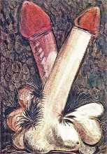 Phalluses as noses, snakes, bulls and fruit stands, and transformed breasts and testicles as bunches of grapes – that’s the work of today’s new artist, the multi-talented Italian Piero Fornasetti. See his Elogium Mentulae (In Praise of the Penis) now by clicking here.