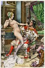 Chéri Hérouard is best known for his spanking illustrations, but he was also a talented colourist for more conventional erotic classics. Today we bring you all 64 plates from the Queen of Navarre’s renaissance epic the Heptameron – see them now by clicking here.