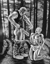 For a feast of gay fantasy (and maybe a bit of autobiography?), enjoy the work of today’s new artist, upstate New Yorker Neil Lavey, with any number of bear/cub encounters in dark places. See Neil’s work now by clicking here.