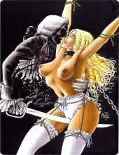 Today’s new artist is one of the masters of the erotic French bande dessinée – the remarkable Bernard Dufossé, better known in this guise as Hanz Kovacq. By clicking here you can see complete opening stories from the ‘Hilda’ and ‘Diane’ series. Prepare to be shocked!