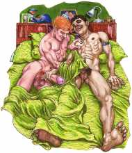 What a treat today! We are delighted to bring you the colourful and witty gay world of the great Michael Kirwan, whose talent brought to life the variety of intimate encounter and fired the imagination of his many admirers. See his wonderful work now by clicking here.