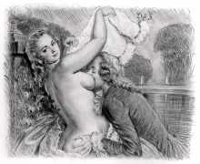 Today’s new artist is Eberhard Schlotter, and his dark painterly engravings for Sade’s Philosophy in the Boudoir, a tale of libertine adventure where anything and everything sexual is permissible. See Schlotter’s work now by clicking here.